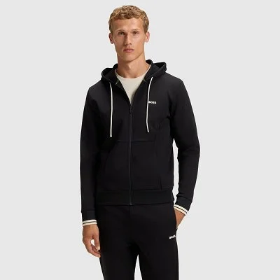 Chaqueta con capucha para hombre de BOSS, confeccionada en tejido técnico de alto rendimiento que ofrece comodidad y libertad de movimiento. Presenta cierre de cremallera completo, bolsillos frontales y cordones ajustables en la capucha. Los detalles de diseño minimalistas se realzan con el logotipo de la marca en el pecho, aportando un acabado moderno y distintivo. Ideal para un estilo deportivo o casual contemporáneo.