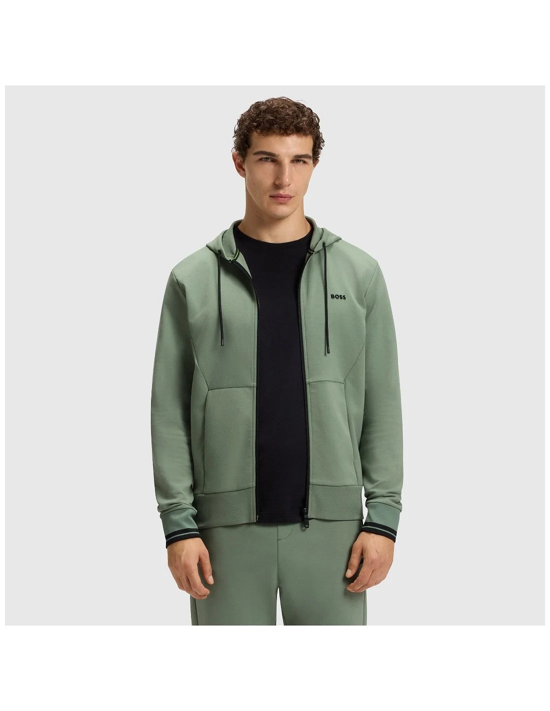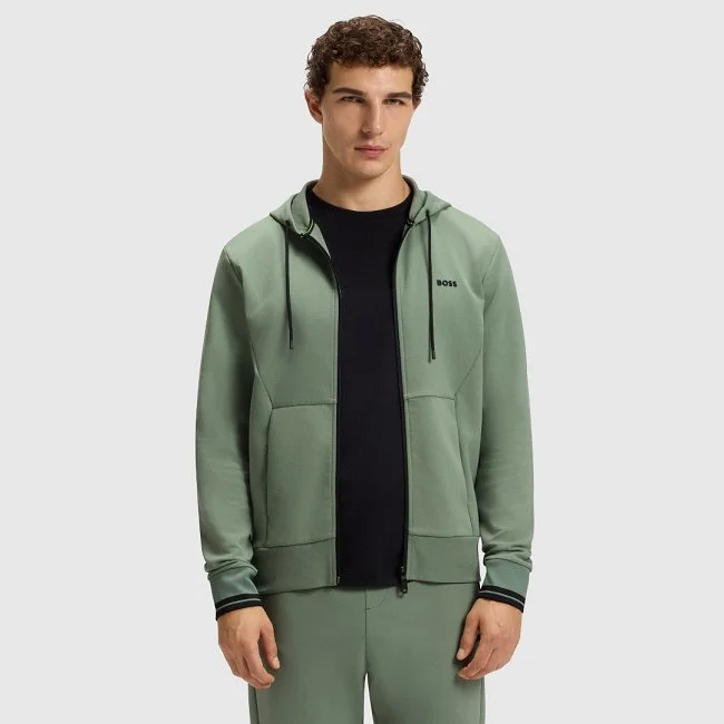 Chaqueta con capucha para hombre de BOSS, confeccionada en tejido técnico de alto rendimiento que ofrece comodidad y libertad de movimiento. Presenta cierre de cremallera completo, bolsillos frontales y cordones ajustables en la capucha. Los detalles de diseño minimalistas se realzan con el logotipo de la marca en el pecho, aportando un acabado moderno y distintivo. Ideal para un estilo deportivo o casual contemporáneo.