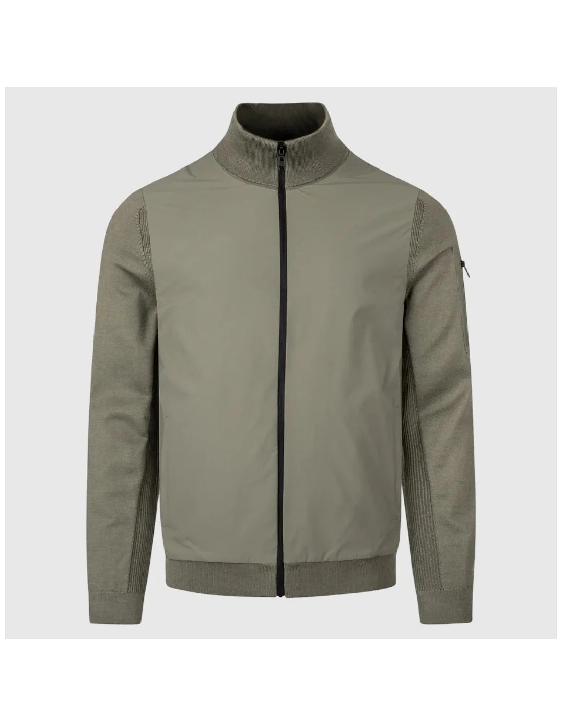 Chaqueta para hombre de BOSS con diseño híbrido y funcional. Confeccionada en mezcla de tejidos, combina paneles frontales lisos con mangas y espalda en punto estructurado. Incorpora cierre de cremallera completo, cuello alto y un distintivo bolsillo con cremallera y logotipo en relieve en la manga. Una prenda moderna que fusiona estilo deportivo y elegancia casual.