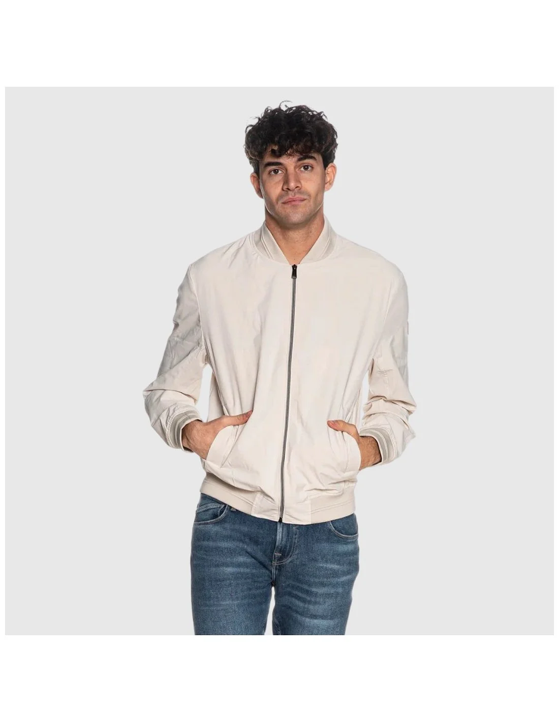 Chaqueta Guess estilo bomber con cierre frontal de cremallera y cuello redondo acanalado. Diseño ligero y cómodo, con bolsillos laterales funcionales y acabados elásticos en puños y bajo para un mejor ajuste. Incorpora detalle de logotipo en la manga que aporta un toque distintivo. Ideal para completar looks casuales y urbanos de entretiempo.