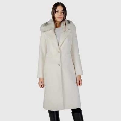 El abrigo Guess combina elegancia y sofisticación con un diseño de corte largo y solapas clásicas. Destaca por su cuello con detalle de pelo sintético desmontable, bolsillos laterales y cierre frontal con botones. Su silueta estructurada lo convierte en una prenda versátil, ideal para elevar conjuntos formales o añadir un toque refinado a looks casuales.