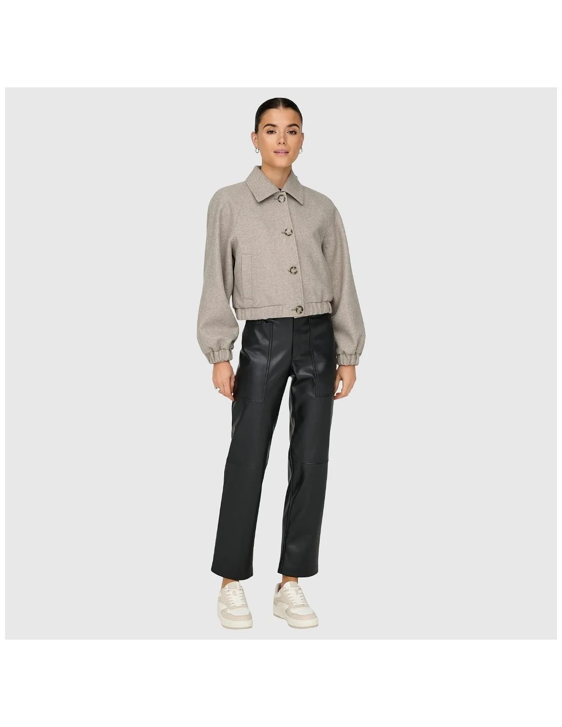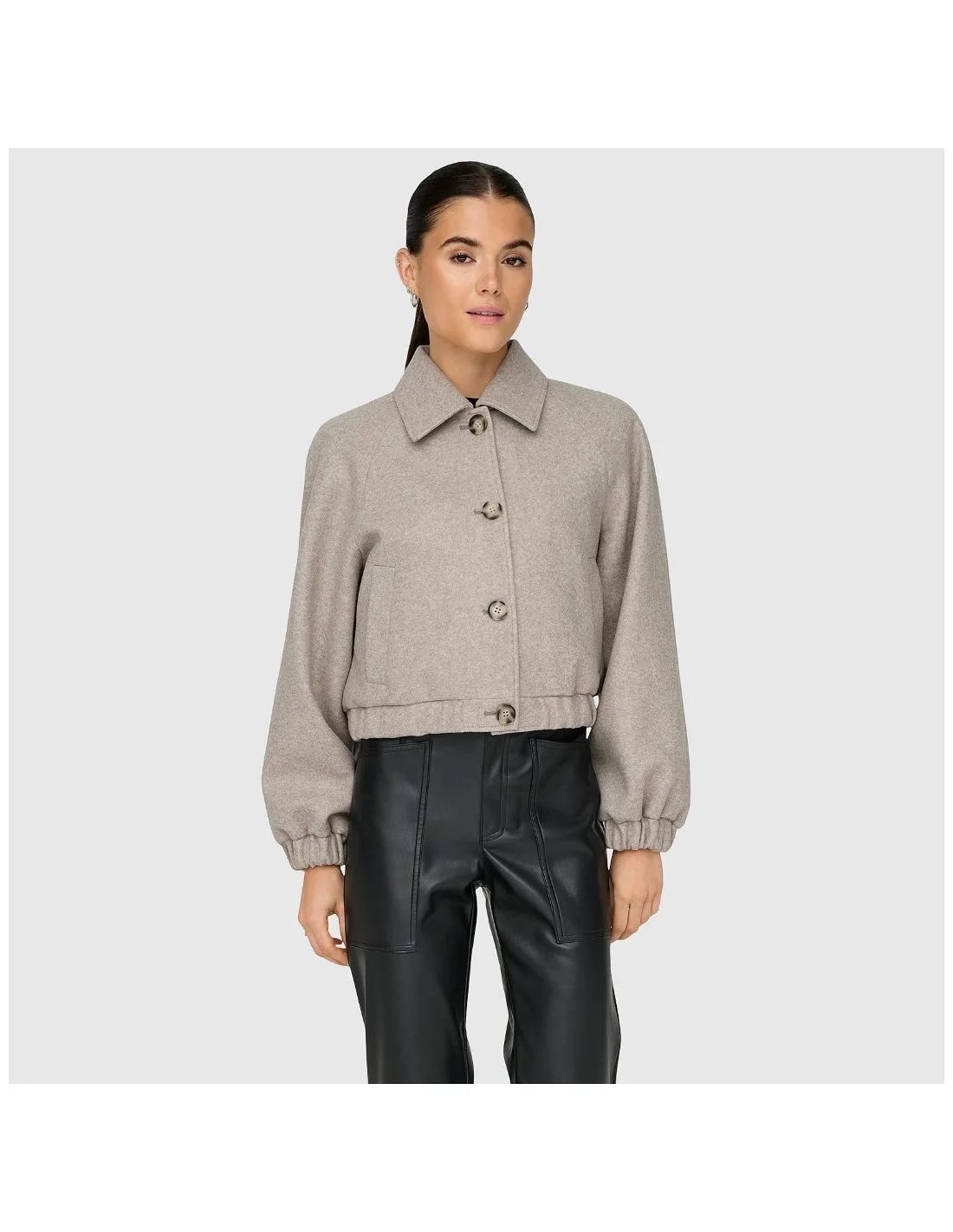 Chaqueta de Only con diseño corto y moderno. Presenta cierre frontal con botones grandes, cuello clásico y bolsillos laterales. Los puños y el bajo cuentan con acabado elástico, aportando comodidad y un ajuste favorecedor. Una prenda versátil y elegante para completar looks casuales y urbanos.