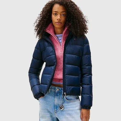 Chaqueta acolchada de Tommy Hilfiger con capucha extraíble y borde de pelo sintético. Presenta cierre de cremallera, bolsillos laterales y puños elásticos para mayor comodidad. Incluye el logotipo bordado en el pecho, ofreciendo un diseño funcional y moderno ideal para los días fríos.