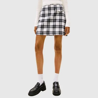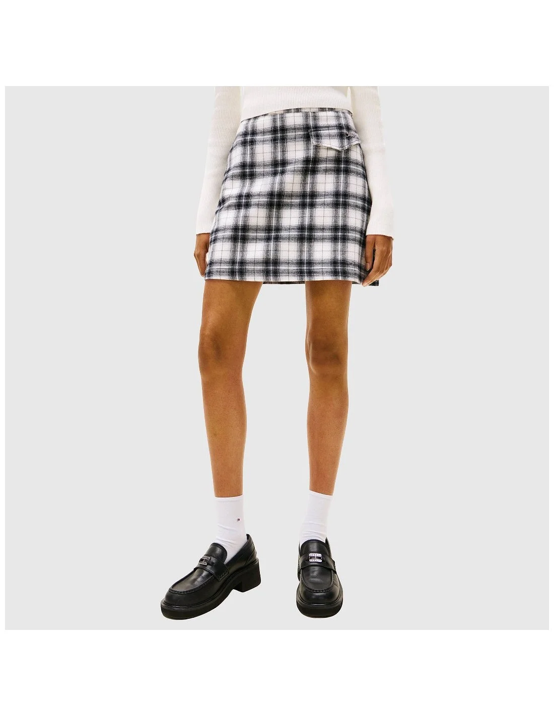 La falda Tommy Hilfiger es una prenda femenina de corte recto ideal para un estilo casual. Confeccionada en tejido de mezcla con acabado tipo lana, presenta un diseño de cuadros en blanco y negro que aporta un aire clásico y moderno a la vez. Su ajuste favorecedor y detalle de bolsillo trasero con placa metálica logotipada completan un look versátil para el día a día.