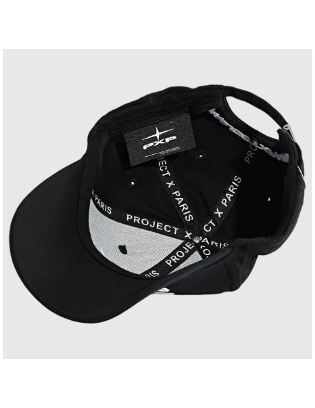 La gorra de Project X Paris es un accesorio esencial con estilo urbano. Confeccionada en algodón, presenta el logotipo PXP bordado al frente y ajuste trasero metálico personalizado. El interior incorpora cintas con branding repetido, aportando un acabado premium. Ideal para complementar looks casuales con un toque distintivo.
