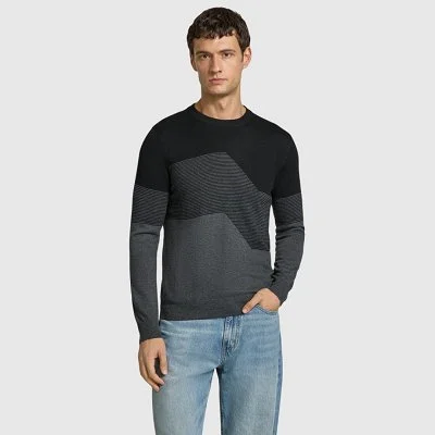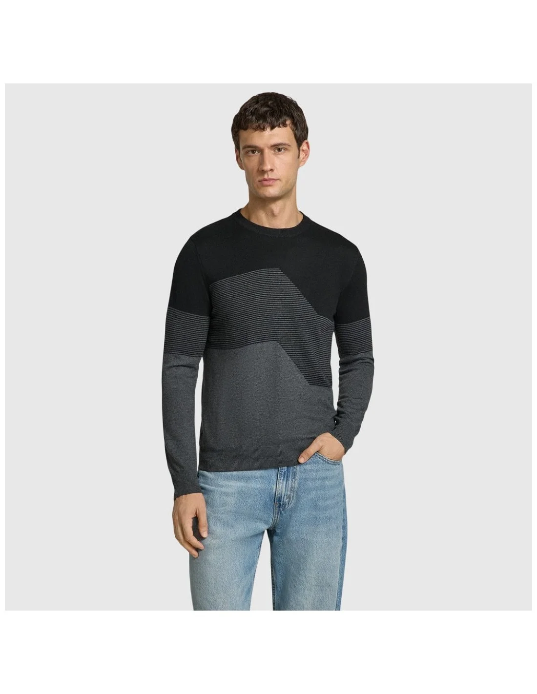Jersey de Antony Morato con cuello redondo y manga larga, confeccionado en punto ligero de tacto suave. Destaca por su diseño geométrico a contraste en el pecho y las mangas, que aporta un estilo moderno y dinámico. Su corte regular ofrece comodidad y versatilidad, ideal para combinar con jeans o pantalones de vestir en looks casuales y urbanos.
