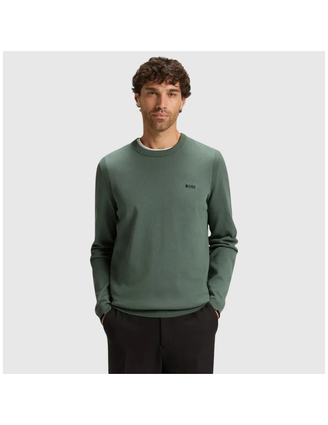 Este jersey BOSS para hombre combina un diseño minimalista con un acabado sofisticado. De cuello redondo y manga larga, está confeccionado en un tejido ligero y cómodo, ideal para llevar en cualquier época del año. El logo bordado en el pecho aporta un detalle distintivo y elegante, perfecto para looks tanto casuales como más formales.