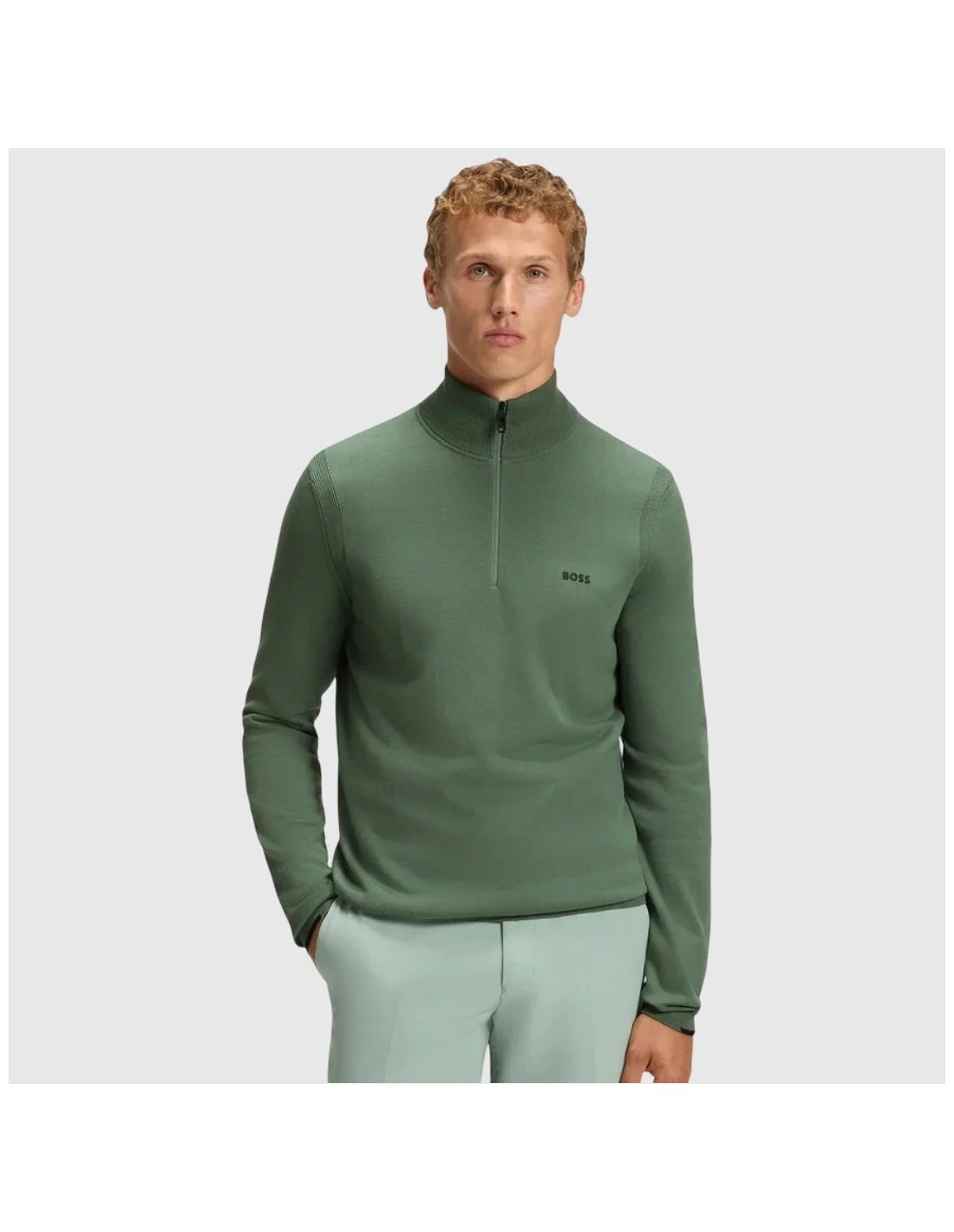Jersey de BOSS con media cremallera y cuello alto, ideal para un estilo casual sofisticado. Confeccionado en punto fino, presenta un diseño limpio con el logotipo bordado en el pecho. Su ajuste moderno y acabados acanalados en puños y dobladillo aportan comodidad y elegancia atemporal.