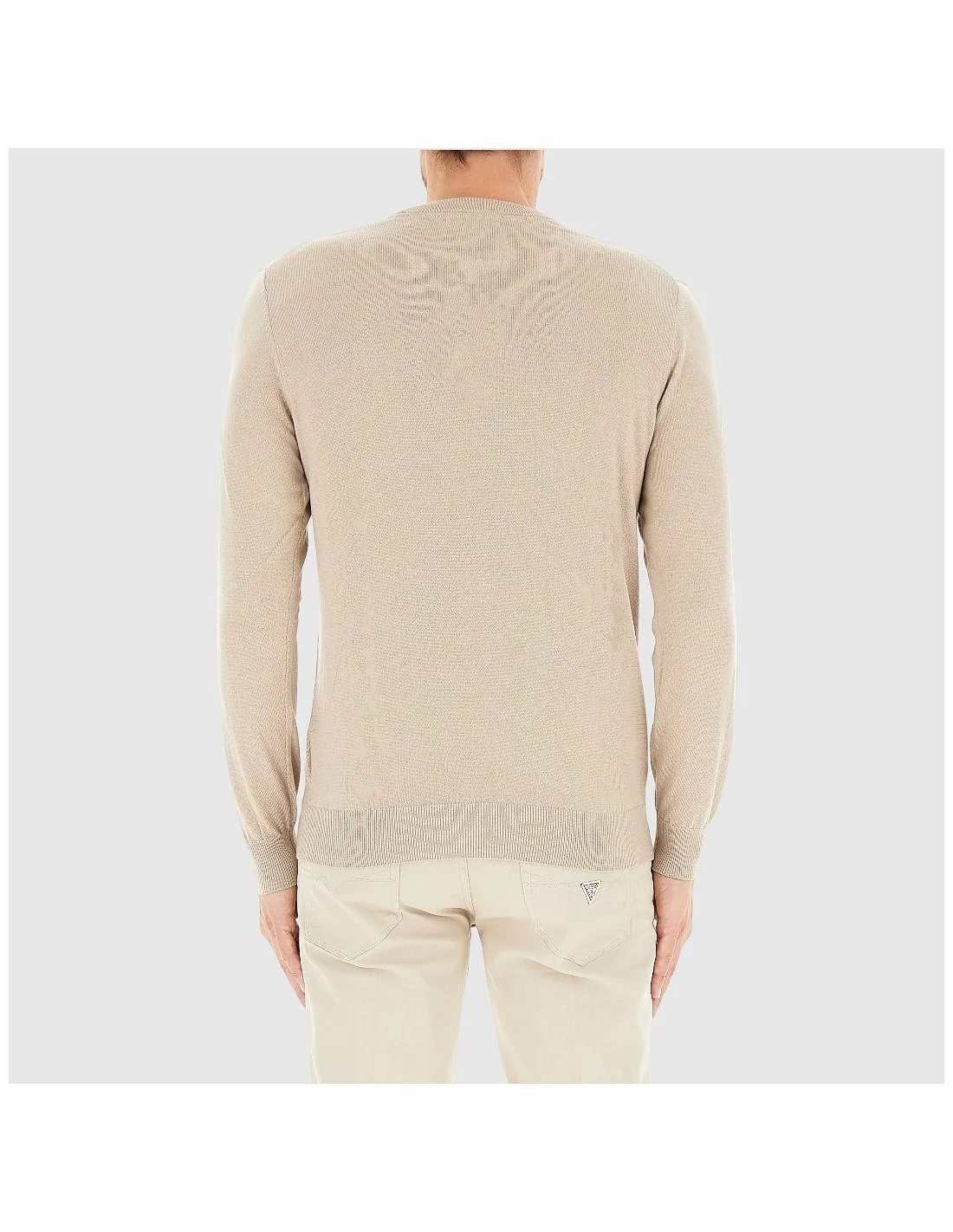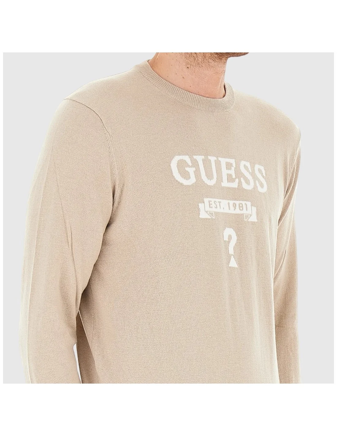 El jersey de hombre Guess presenta un diseño clásico con cuello redondo y ajuste regular. Destaca por el logo frontal en tejido de punto con el año de fundación de la marca. Su confección en tejido ligero y suave lo convierte en una prenda ideal para entretiempo, perfecta para lograr un look casual y sofisticado.