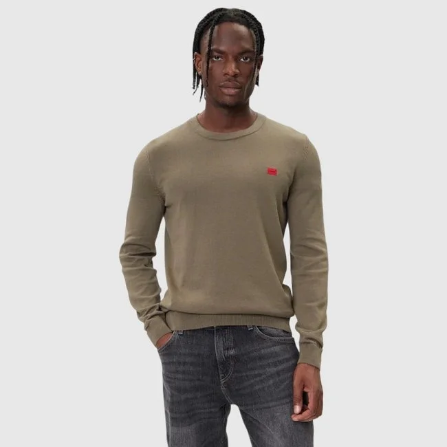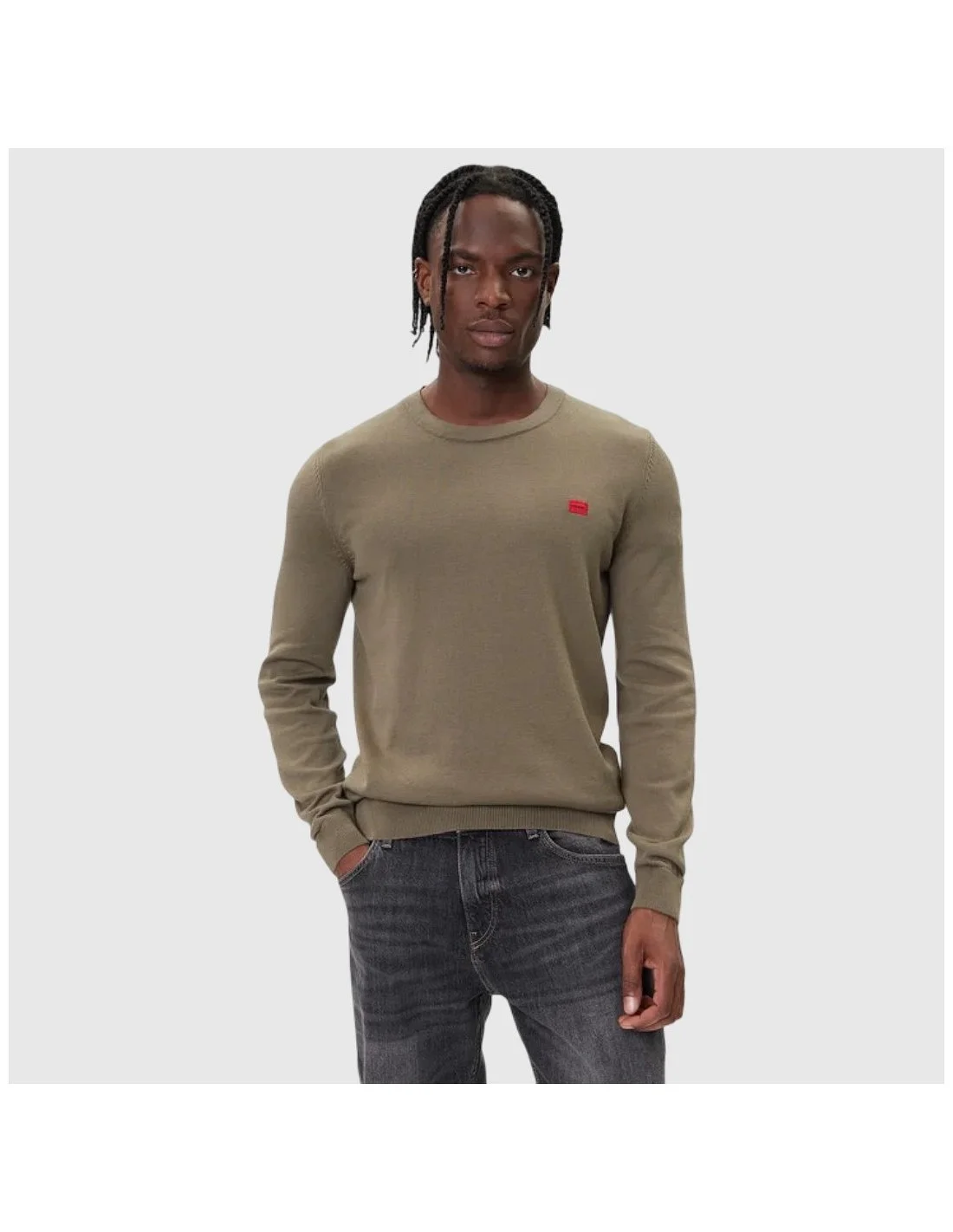 Jersey HUGO para hombre de diseño moderno y versátil. Confeccionado en punto suave y ligero, ofrece comodidad durante todo el día. Presenta cuello redondo, manga larga y el logo distintivo de la marca en el pecho, aportando un toque contemporáneo. Ideal para combinar con looks casuales o semiformales.