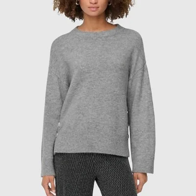 El jersey de punto de ONLY es una prenda casual ideal para el día a día. Presenta un corte holgado con hombros caídos y cuello redondo, que aporta comodidad sin perder estilo. Su diseño se realza con botones metálicos decorativos en el lateral y acabados acanalados en puños y bajo. Perfecto para combinar con jeans o pantalones casuales durante los días frescos.