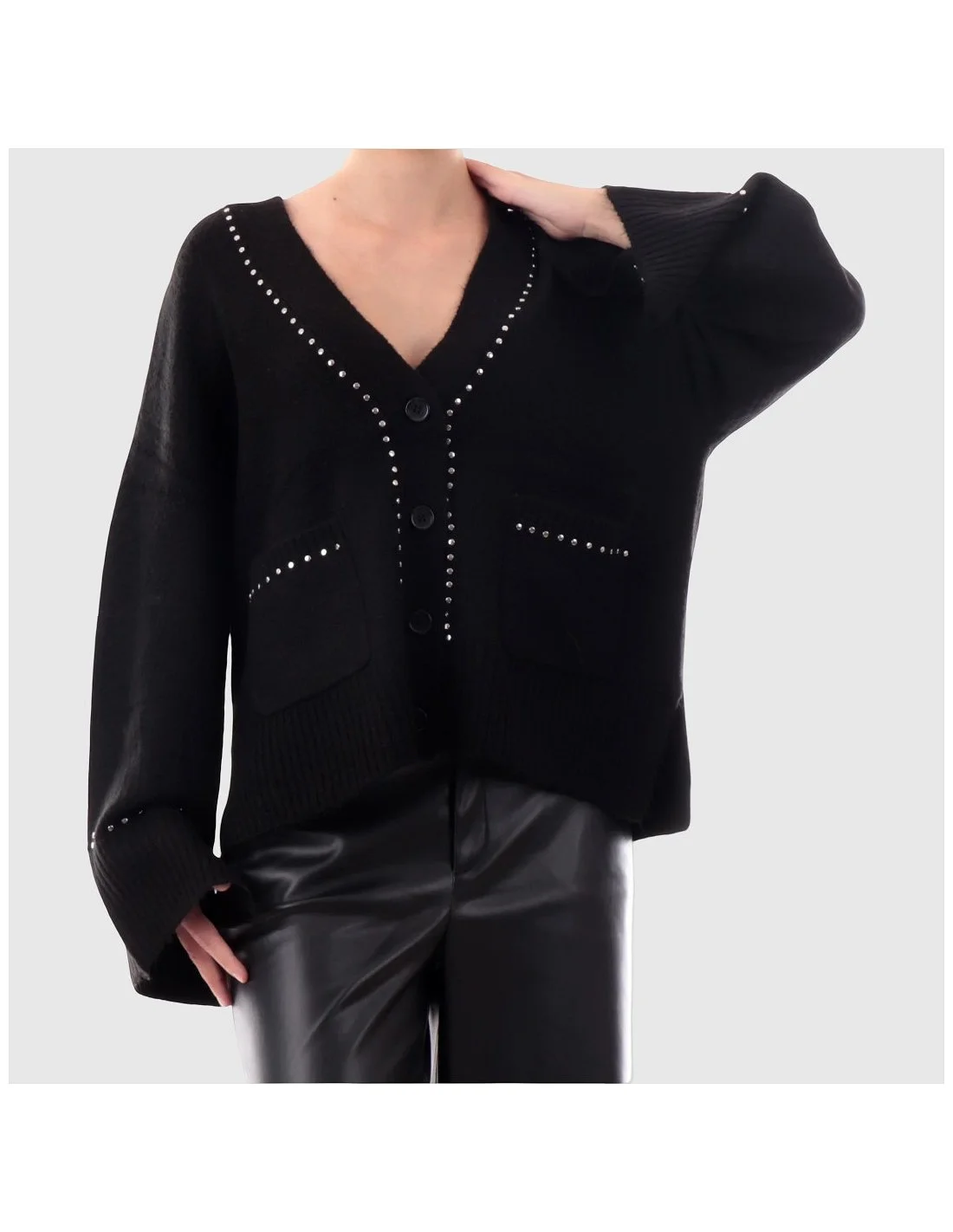 El cárdigan Only es una prenda cómoda y actual, perfecta para el día a día. Su diseño de corte relajado incorpora cierre frontal con botones, bolsillos de parche y detalles de tachuelas metálicas en cuello, puños y bolsillos que aportan un toque distintivo. Ideal para completar looks casuales con estilo.