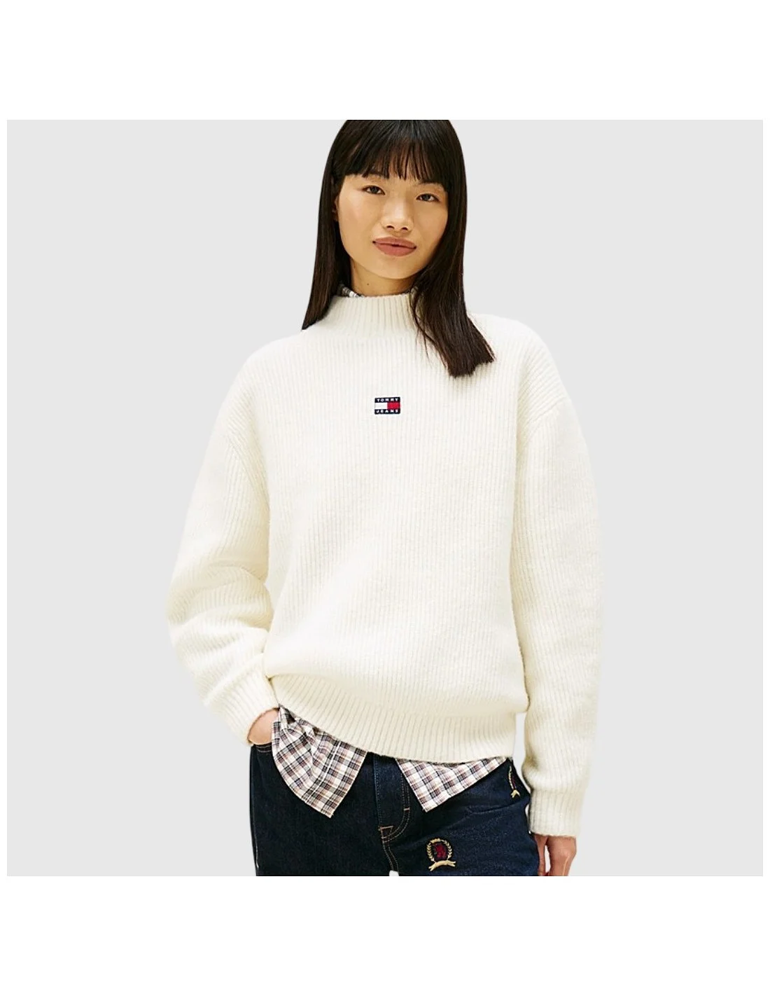 El jersey de mujer Tommy Hilfiger destaca por su diseño de canalé con cuello subido y ajuste relajado. Incorpora el logotipo pequeño bordado en el pecho como sello distintivo. Confeccionado en punto grueso, es ideal para climas fríos y estilos casuales. Su estética minimalista lo hace fácil de combinar en looks urbanos o informales.