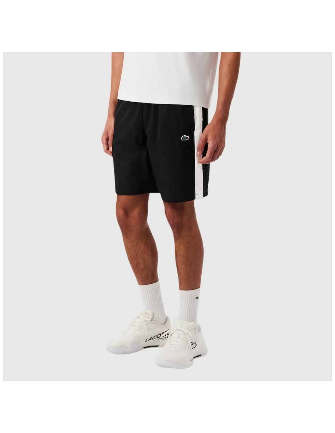 Pantalón corto deportivo de LACOSTE con diseño dinámico y moderno. Cuenta con cintura elástica para un ajuste cómodo, bolsillos laterales y detalles a contraste en los laterales que aportan un toque distintivo. El logo del cocodrilo está bordado en una de las piernas, reafirmando su estilo icónico. Ideal para entrenamientos o looks casuales con un aire atlético.