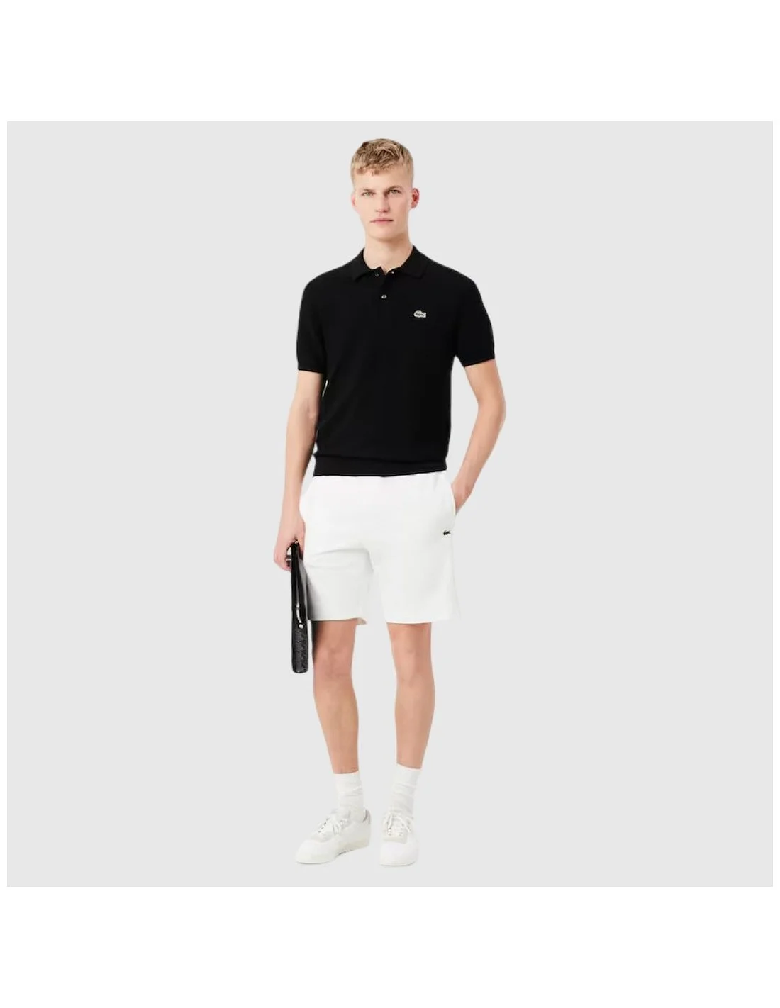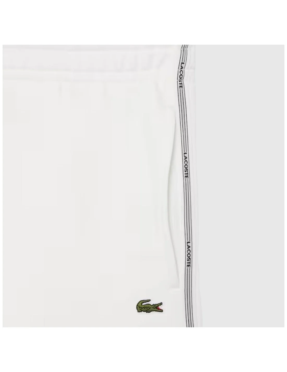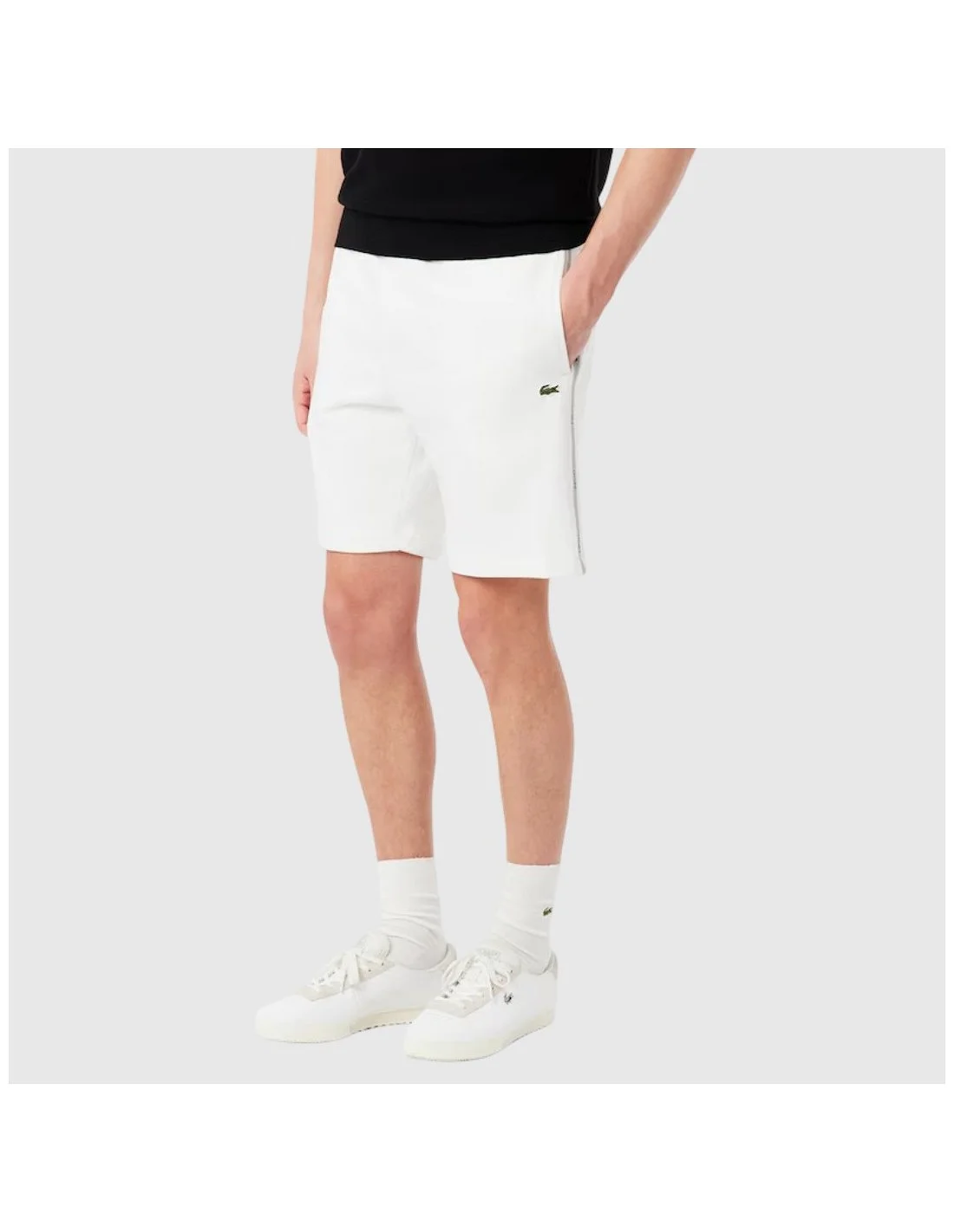El short Lacoste para hombre combina estilo deportivo y comodidad. Confeccionado en tejido suave, presenta corte regular, cintura elástica con cordón ajustable y bolsillos laterales. Destacan las franjas con logo Lacoste en los costados y el icónico cocodrilo bordado. Ideal para looks casuales o actividades relajadas.