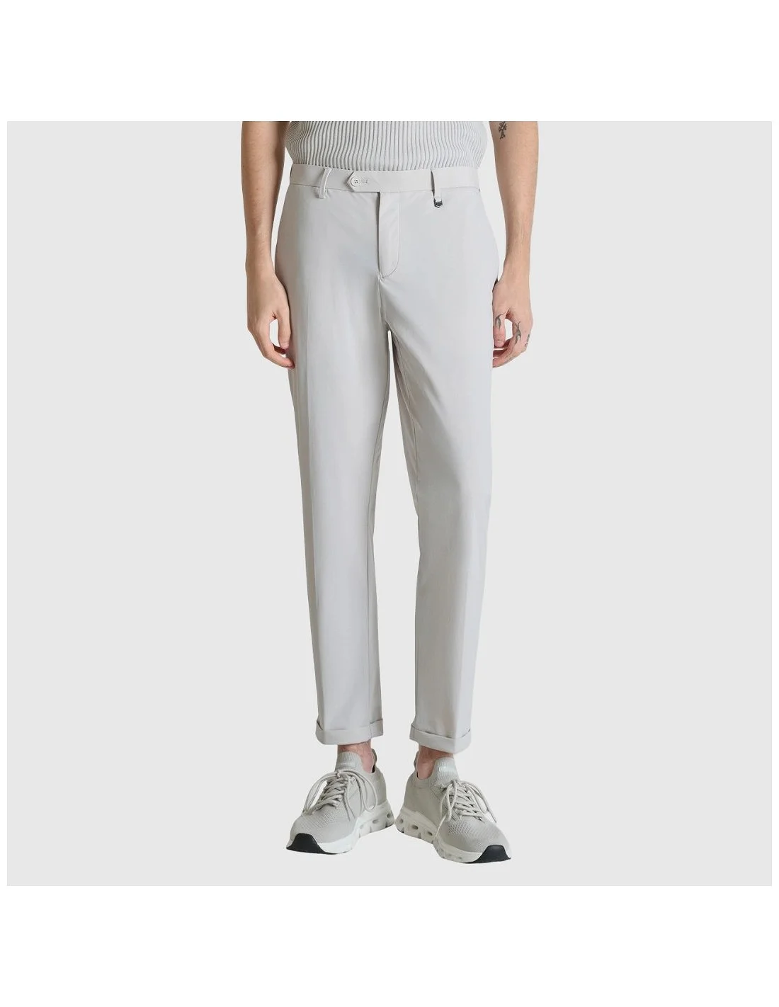 Pantalón de Antony Morato con diseño moderno de corte slim y acabado ligeramente elástico para mayor comodidad. Cuenta con cintura elástica posterior, cierre con cremallera y botón, bolsillos laterales inclinados y bolsillos traseros tipo ojal. Ideal para looks casuales o semi-formales con un toque pulido y versátil.