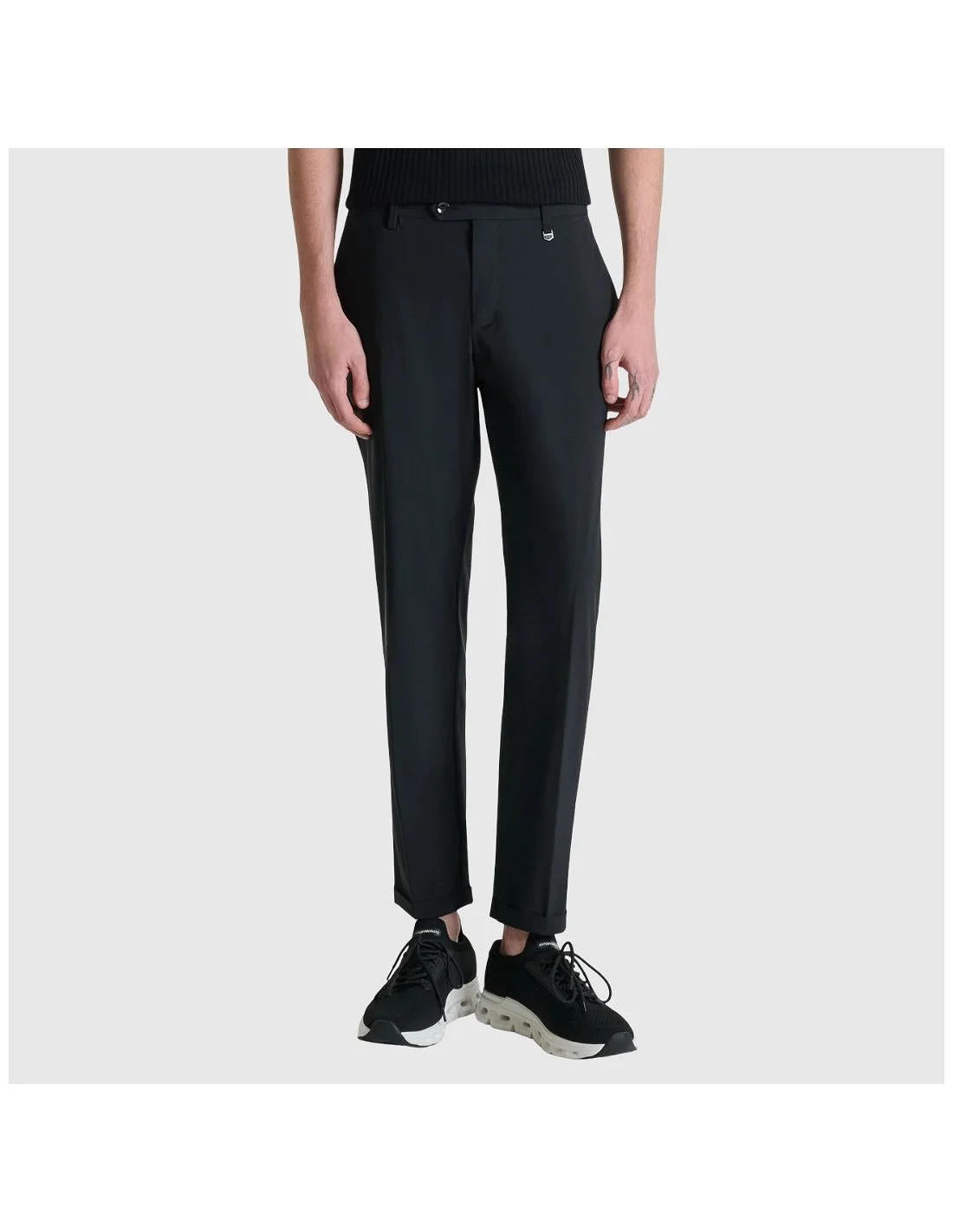 Pantalón de Antony Morato con diseño moderno de corte slim y acabado ligeramente elástico para mayor comodidad. Cuenta con cintura elástica posterior, cierre con cremallera y botón, bolsillos laterales inclinados y bolsillos traseros tipo ojal. Ideal para looks casuales o semi-formales con un toque pulido y versátil.