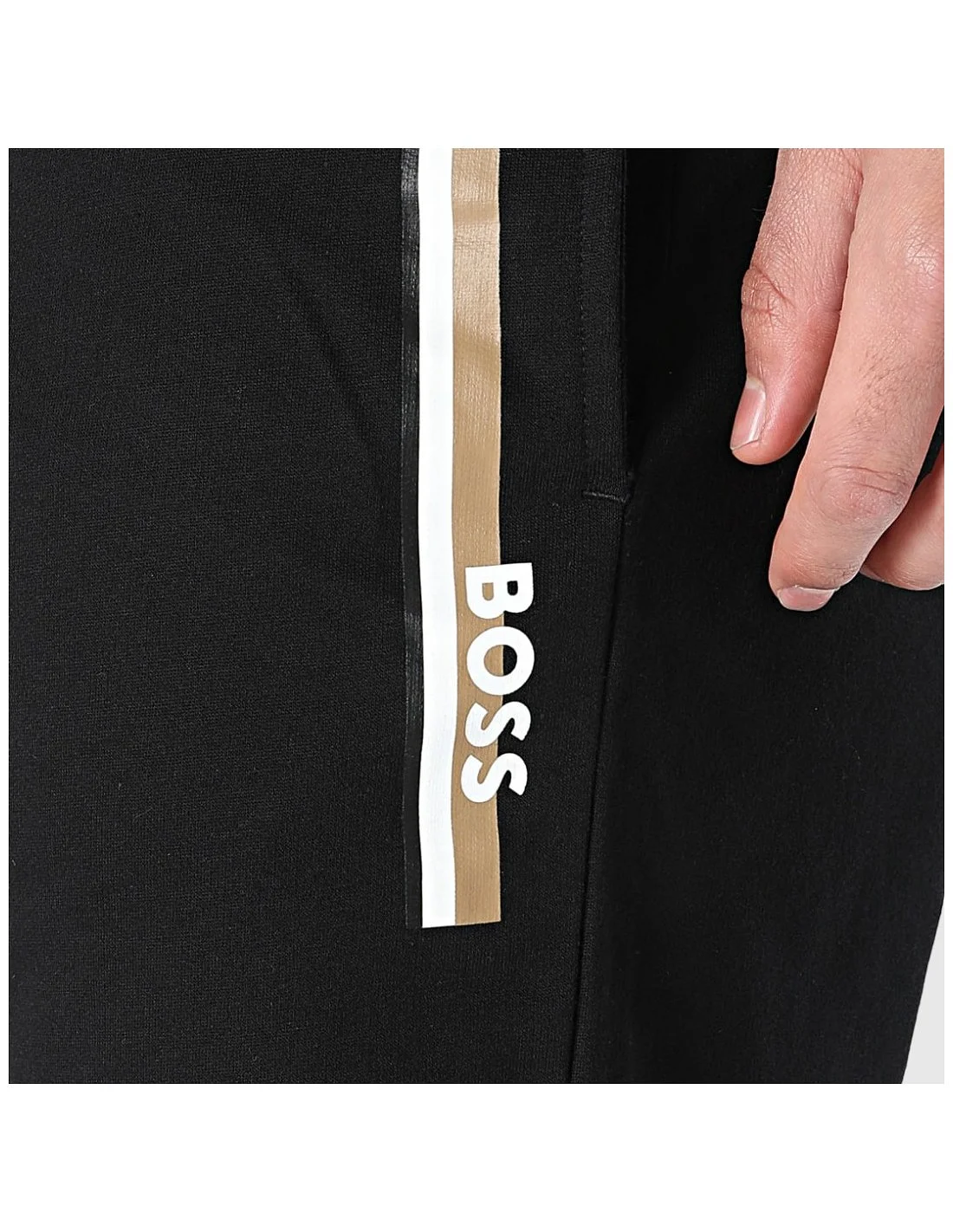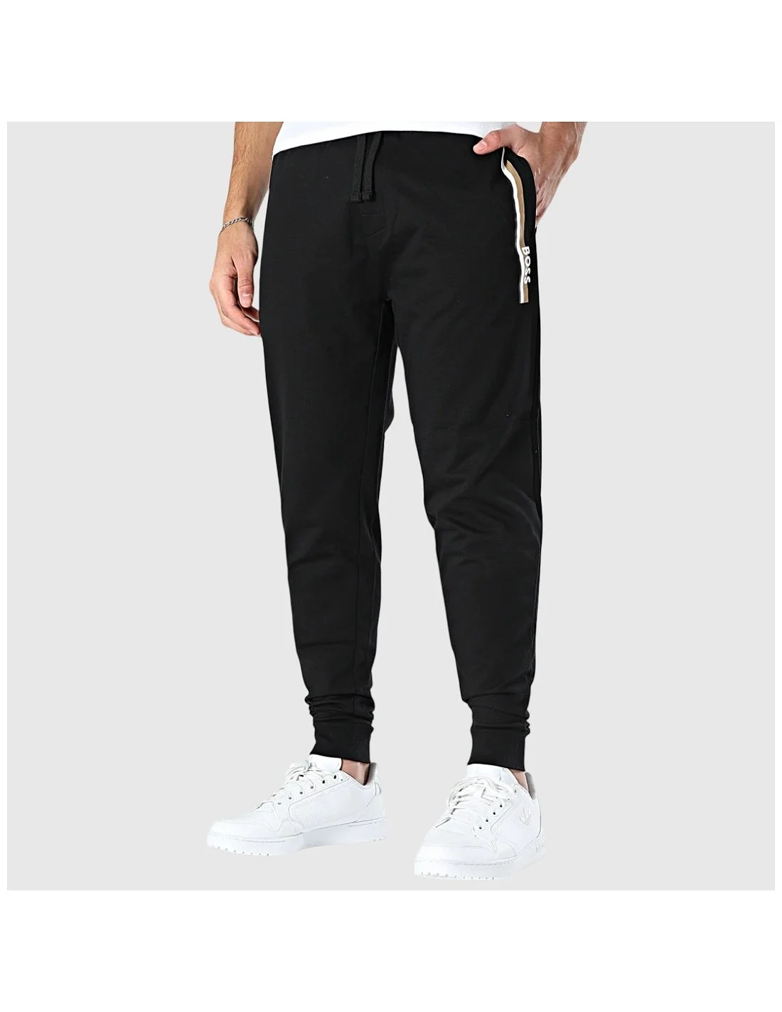 Pantalón jogger de BOSS con diseño deportivo y moderno. Confeccionado en tejido suave y elástico, presenta cintura elástica con cordón ajustable, bolsillos laterales y puños acanalados en los tobillos. Un detalle distintivo en el lateral con el nombre de la marca añade un toque de estilo urbano. Ideal para looks casuales o de entrenamiento.