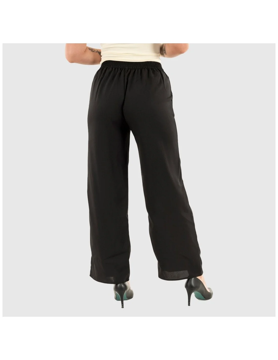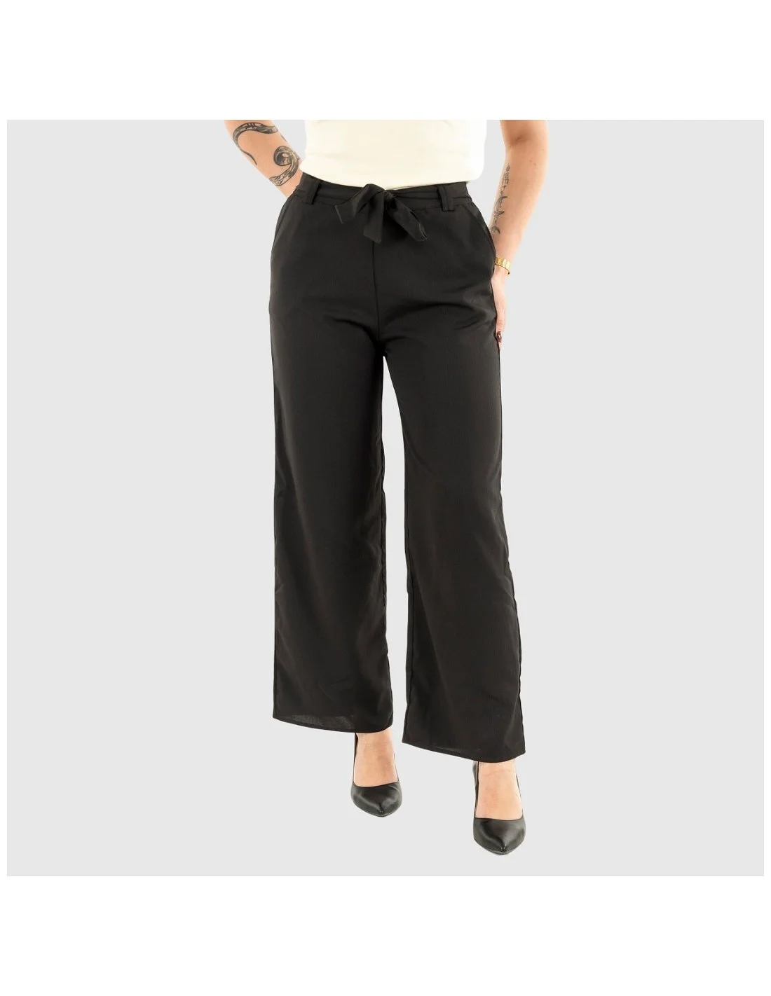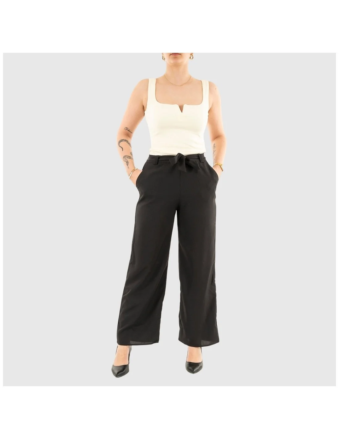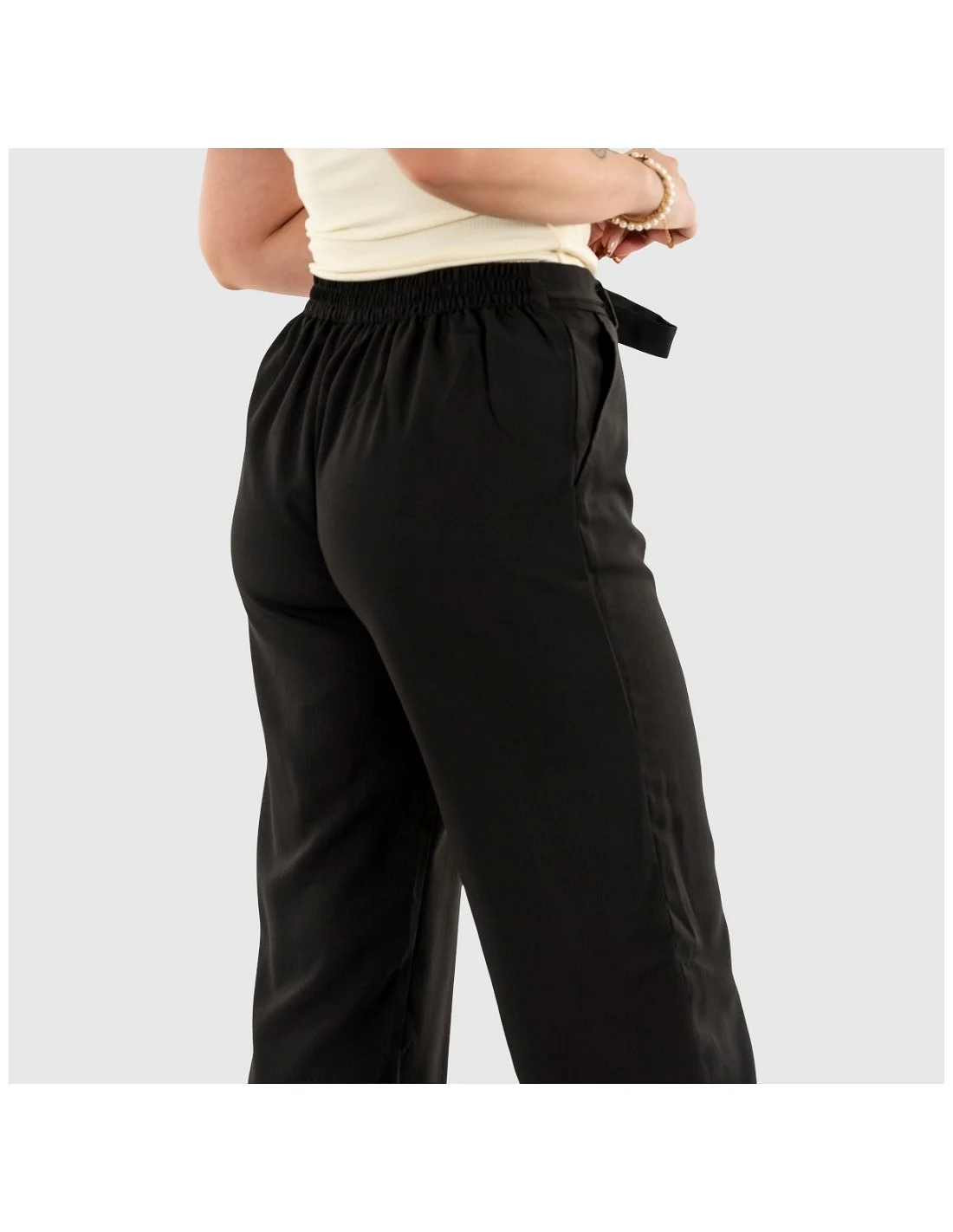 Pantalón ONLY de corte ancho con cintura elástica y lazo ajustable en la parte frontal. Incluye bolsillos laterales y un diseño fluido que aporta comodidad y estilo, ideal para looks casuales o de oficina.