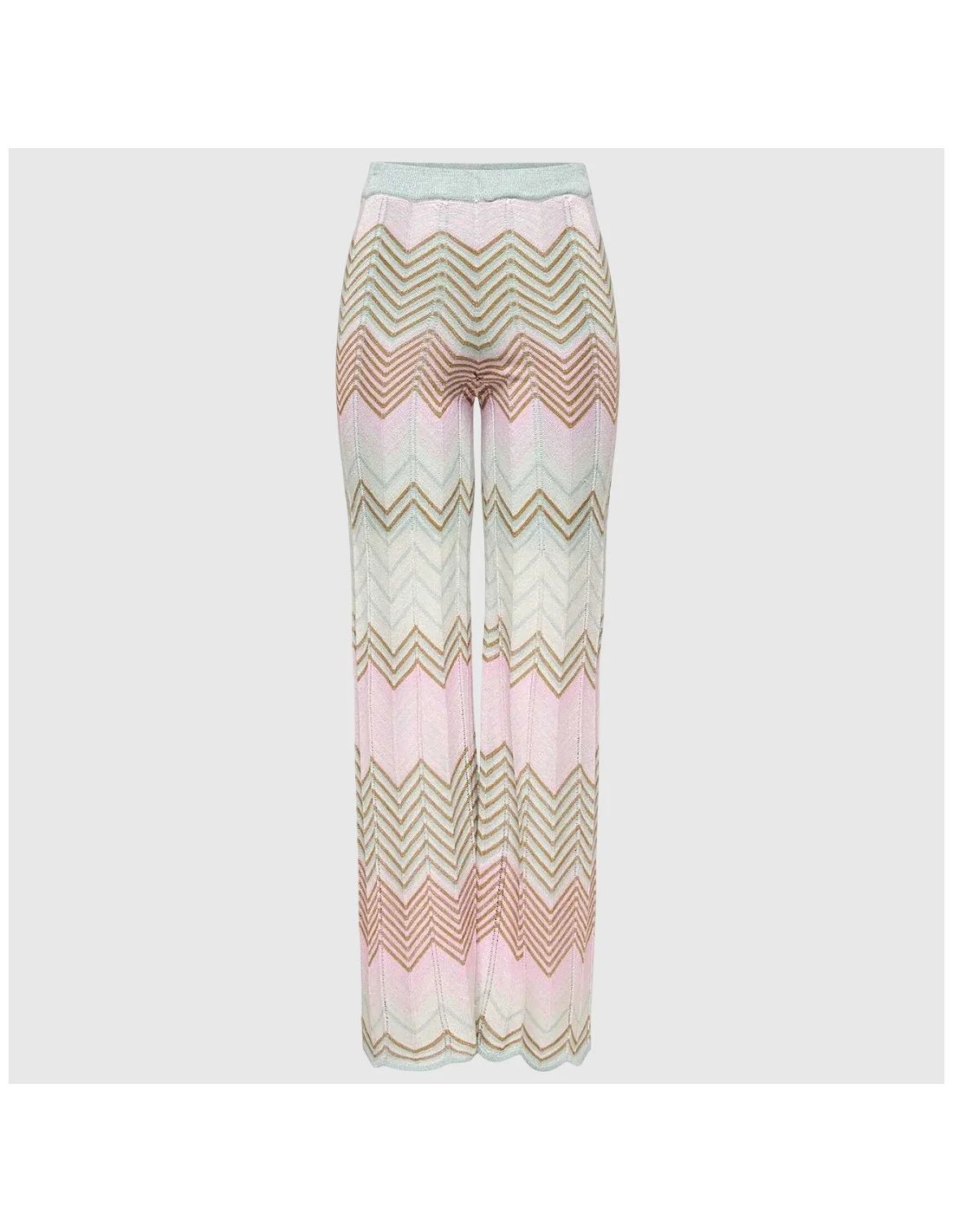 El pantalón de punto de Only presenta un diseño acanalado con patrón zigzag multicolor que aporta un estilo retro y llamativo. Su corte recto y tejido fluido ofrecen comodidad y movimiento, ideal para looks estivales relajados. Con cintura elástica y acabado en ondas, es una opción original para destacar en climas cálidos.