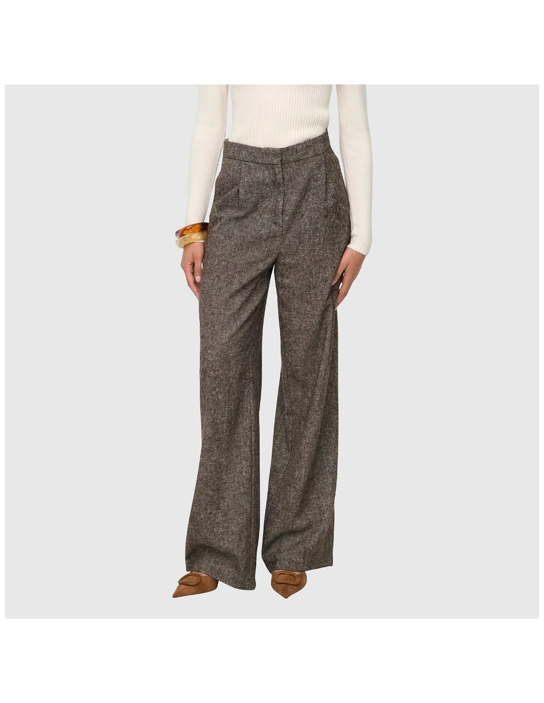 Pantalón ONLY de corte recto y tiro medio, confeccionado en tejido estructurado con caída fluida. Presenta diseño de pernera ancha, pinzas frontales que aportan un ajuste favorecedor y cierre discreto para un acabado limpio. Estilo elegante y versátil, ideal tanto para looks formales como para combinaciones más casuales.
