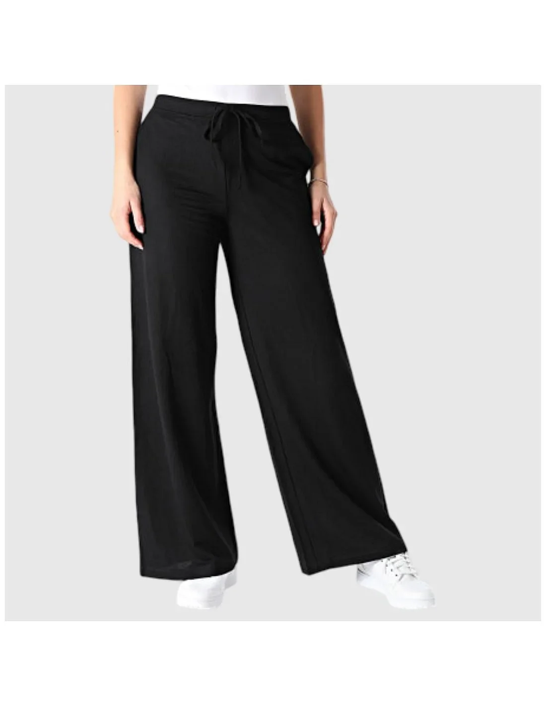 El pantalón de ONLY destaca por su diseño de pierna ancha y tiro medio con cordón ajustable en la cintura, ofreciendo comodidad y estilo relajado. Confeccionado en tejido suave y ligero, es ideal para looks casuales del día a día. Su corte fluido aporta libertad de movimiento, mientras que su acabado minimalista lo convierte en una prenda versátil para distintas combinaciones.