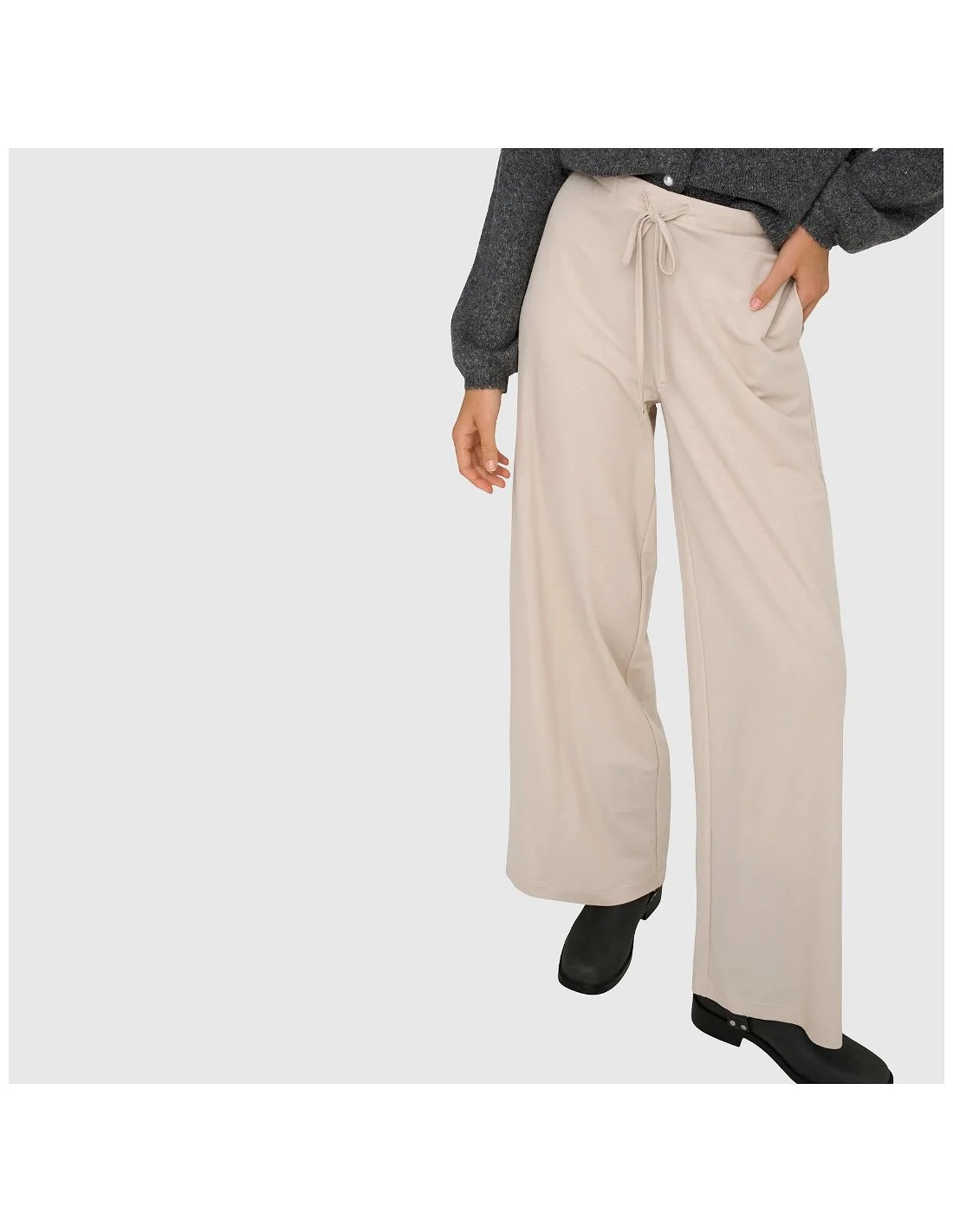 El pantalón de ONLY destaca por su diseño de pierna ancha y tiro medio con cordón ajustable en la cintura, ofreciendo comodidad y estilo relajado. Confeccionado en tejido suave y ligero, es ideal para looks casuales del día a día. Su corte fluido aporta libertad de movimiento, mientras que su acabado minimalista lo convierte en una prenda versátil para distintas combinaciones.