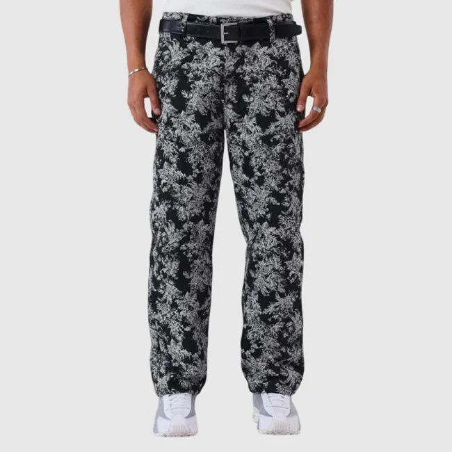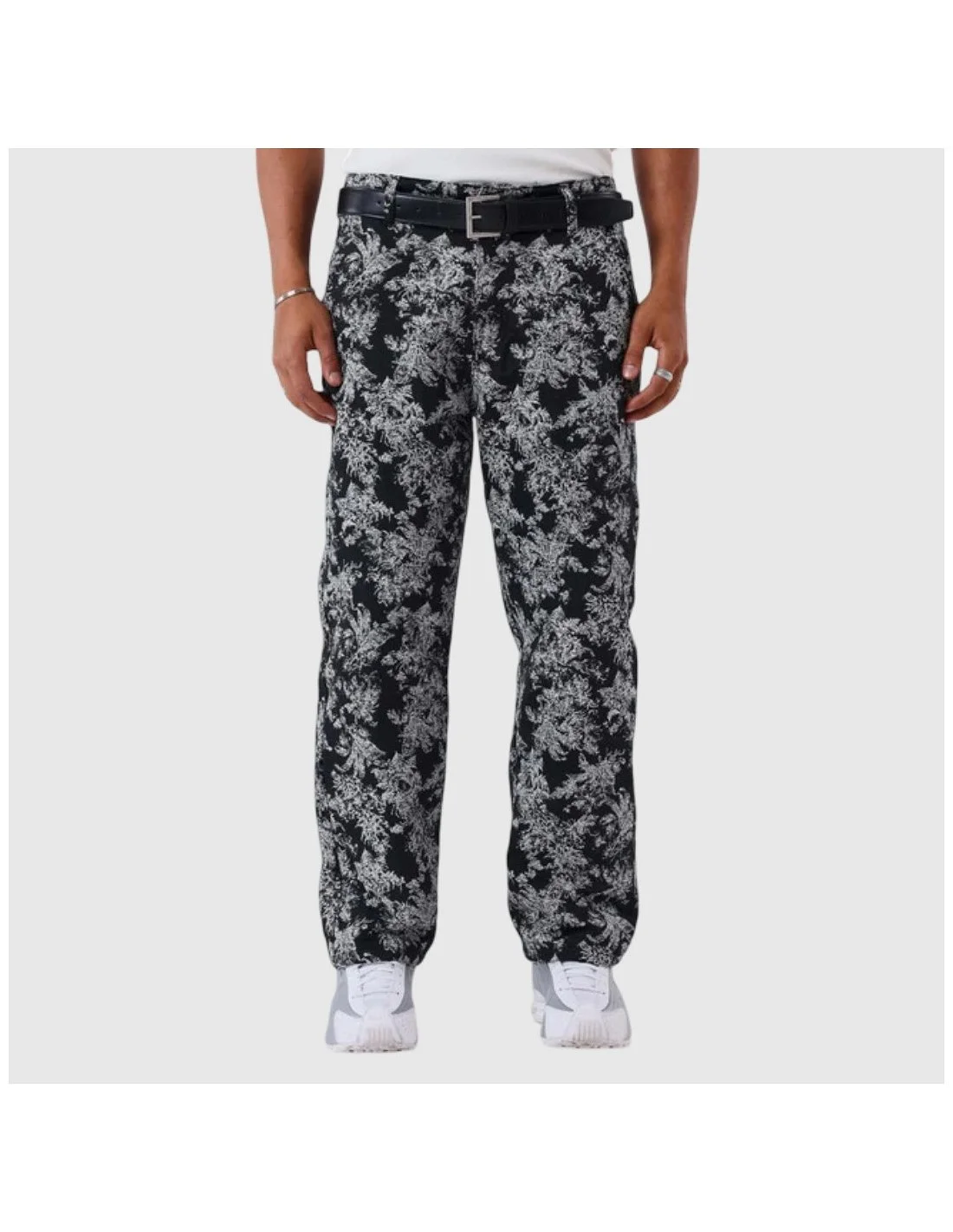Pantalón Project X Paris con estampado integral de estilo botánico que aporta un toque audaz y moderno. Presenta un corte recto con ajuste relajado, ideal para un look urbano con personalidad. Incorpora presillas para cinturón, bolsillos funcionales y cierre clásico, combinando diseño y funcionalidad. Perfecto para llevar con prendas lisas o como conjunto con la chaqueta a juego.