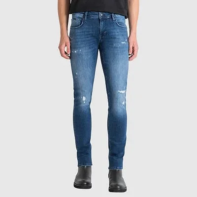 Jeans Antony Morato de corte ajustado con efecto desgastado y ligeros detalles de abrasión en la parte frontal. Presenta cinco bolsillos clásicos y cierre con cremallera y botón. Confeccionado en tejido elástico que ofrece comodidad y un ajuste moderno, ideal para un estilo casual contemporáneo.