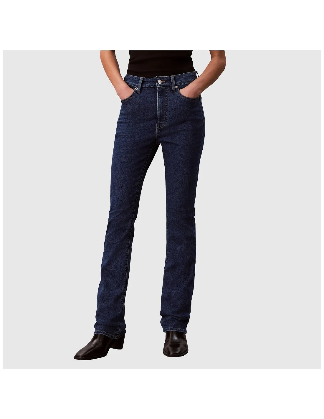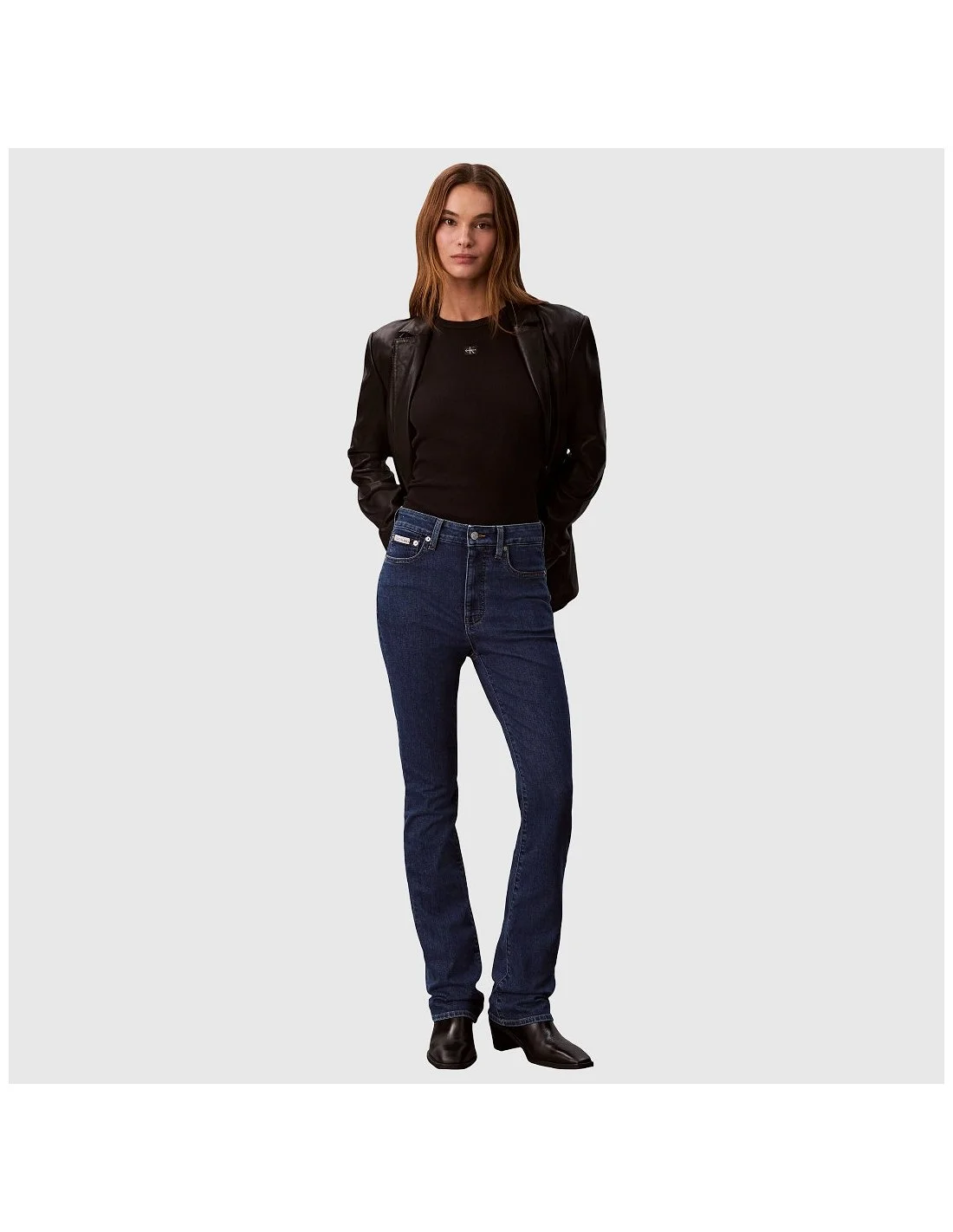 Estos jeans Calvin Klein para mujer presentan un corte recto de tiro alto que estiliza la figura y aporta un look atemporal. Confeccionados en mezclilla resistente con acabado clásico, incluyen etiqueta de piel con logo en la parte trasera. Son ideales para combinar con prendas casuales o semi formales.