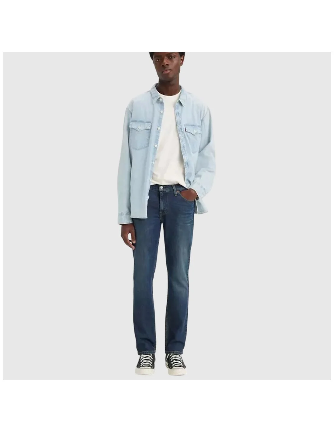 El pantalón Levi's para hombre está confeccionado en denim azul oscuro con un acabado clásico que lo hace versátil y atemporal. Su corte recto favorece la comodidad sin perder estilo, mientras que las costuras en contraste y la etiqueta trasera en cuero refuerzan la autenticidad de la prenda. Con cinco bolsillos funcionales y cierre de cremallera con botón metálico, es una opción ideal para un look casual del día a día que combina fácilmente con camisetas, camisas o chaquetas.