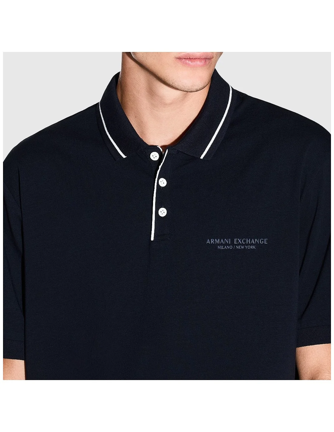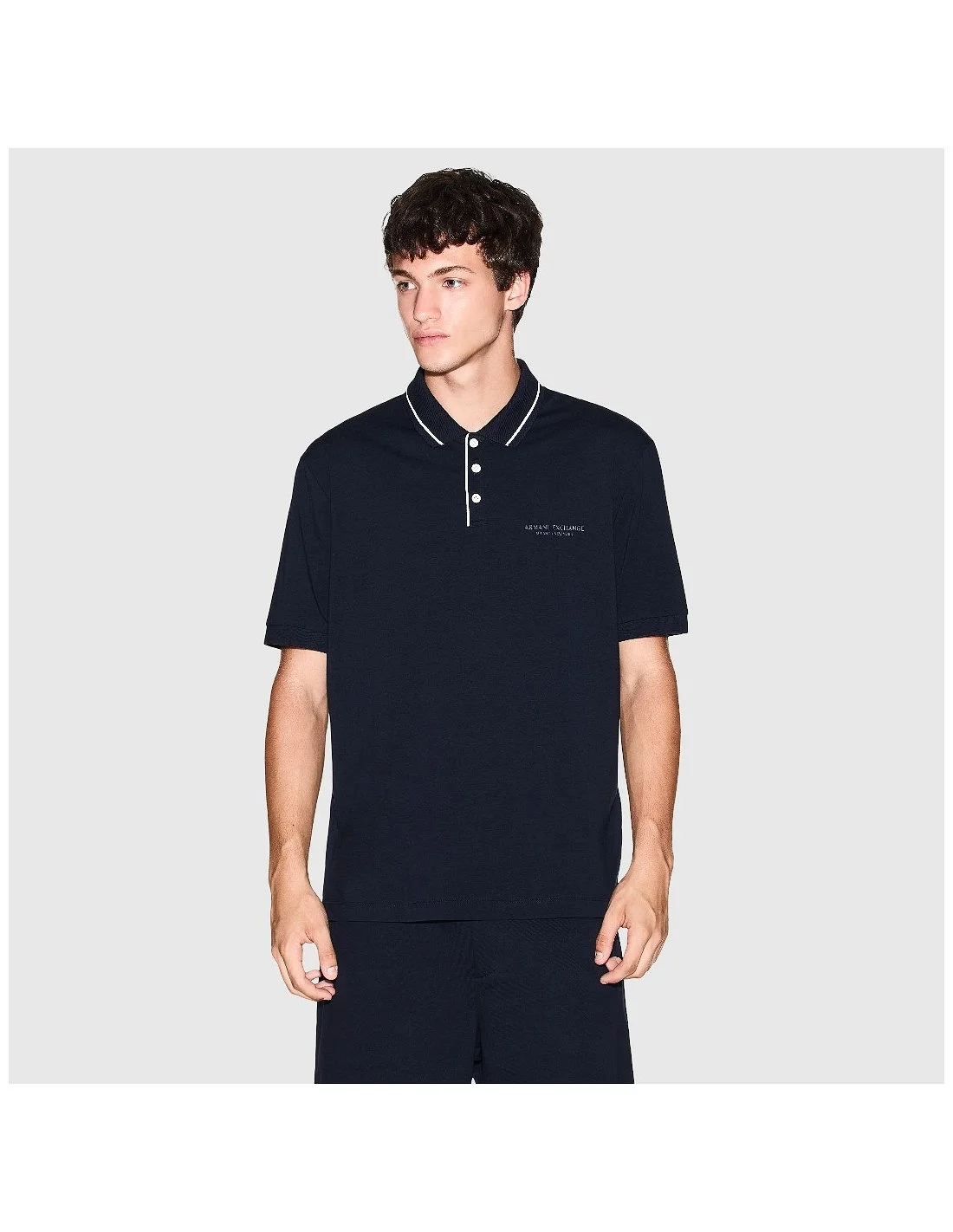 El polo de Armani Exchange presenta un diseño clásico con cuello de solapa y cierre de tres botones. Confeccionado en algodón, incorpora ribetes contrastantes y un logotipo discreto en el pecho. Su corte regular lo convierte en una prenda versátil para un estilo casual y sofisticado.