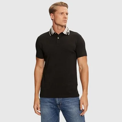 Polo Guess de manga corta con diseño clásico y cierre de botones en la parte frontal. Destaca por su cuello con franjas en contraste y el detalle bordado en la parte posterior. Una prenda versátil que combina un estilo casual con un toque distintivo.