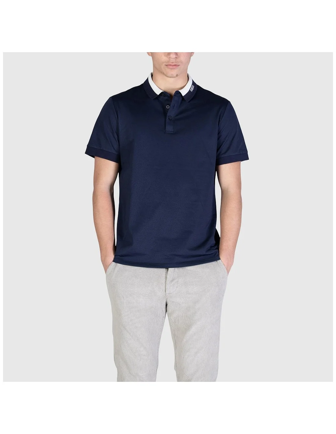 Polo de hombre Guess de diseño clásico con cuello de punto canalé en contraste, decorado con el nombre de la marca en un lateral. Presenta cierre de tres botones y mangas cortas con terminaciones acanaladas. Una prenda versátil, ideal para looks casuales con un toque sofisticado.
