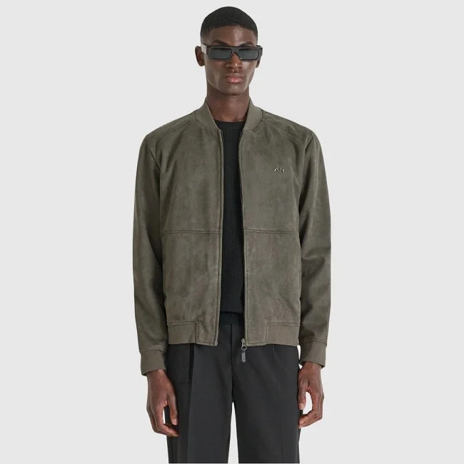Chaqueta estilo bomber de Antony Morato con acabado en efecto ante suave. Presenta cierre de cremallera frontal bidireccional, cuello, puños y bajo en canalé para un ajuste cómodo y moderno. Incluye bolsillos laterales discretos y el logotipo metálico de la marca en el pecho. Una prenda versátil que combina elegancia casual con un aire contemporáneo, ideal para looks urbanos y sofisticados.