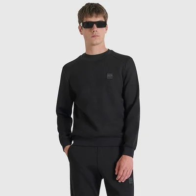 Sudadera Antony Morato de corte regular con cuello redondo y mangas largas. Presenta un diseño minimalista con logo en relieve en el pecho y acabados acanalados en cuello, puños y cintura para un ajuste cómodo. Una prenda versátil ideal para un look casual y moderno.