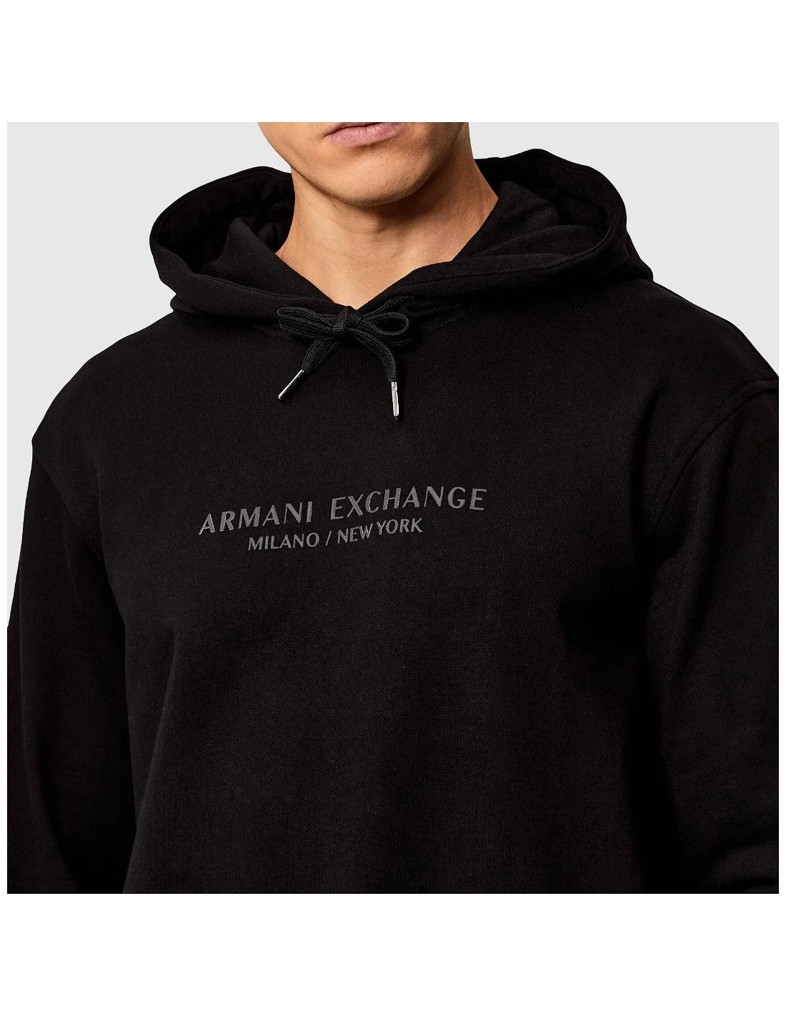 Sudadera con capucha de Armani Exchange, de corte clásico y diseño minimalista. Incorpora un estampado frontal con el logotipo de la marca y las ciudades ?Milano / New York?. Dispone de capucha con cordón ajustable, puños y bajo acanalados para un ajuste cómodo. Una prenda casual ideal para un look urbano relajado.