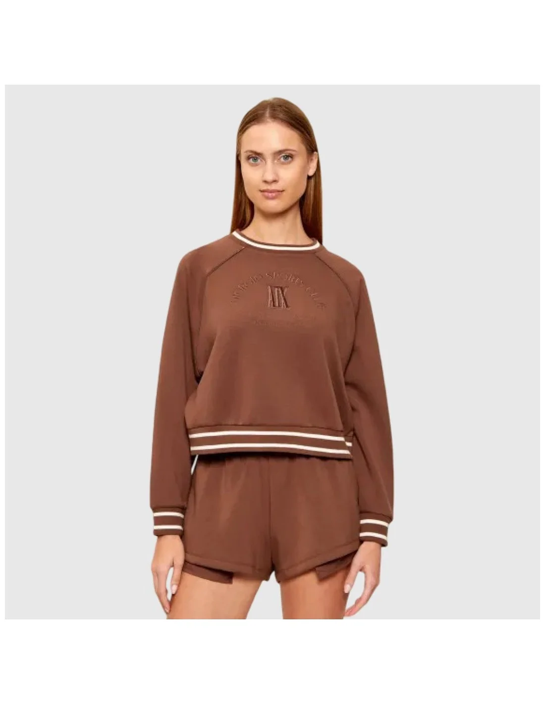 Sudadera Armani Exchange para mujer de estilo casual, diseñada para ofrecer comodidad y un look contemporáneo. Presenta un ajuste regular con mangas largas tipo raglán que favorecen la movilidad. Incorpora cuello redondo, puños y bajo elásticos con acabado acanalado y líneas en contraste. El frontal incluye un logotipo AX y relieve Giorgio Armani Sports Club, aportando un detalle distintivo y elegante para el día a día.