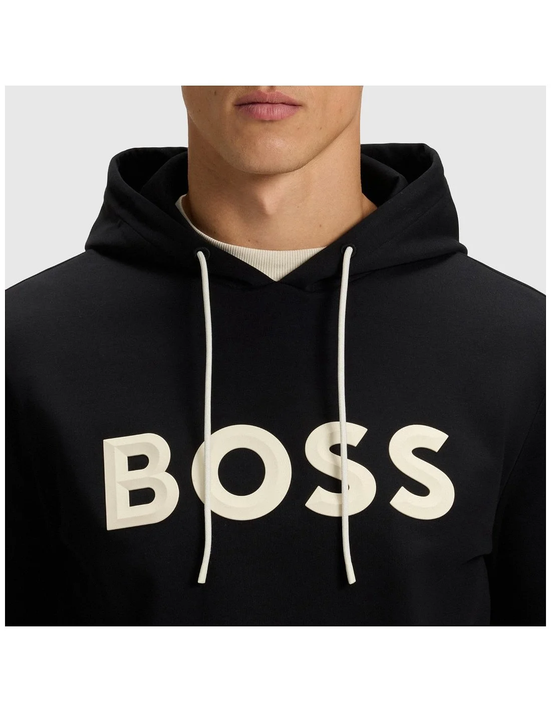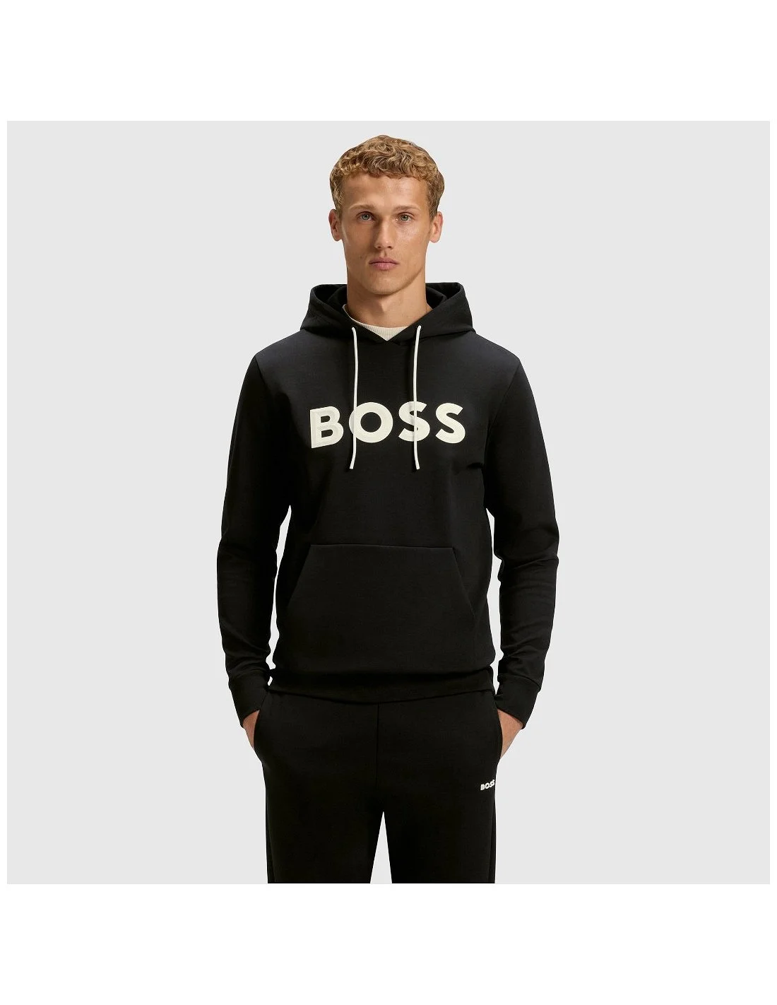 Sudadera con capucha de BOSS de diseño moderno y corte relajado. Presenta el icónico logo de la marca en la parte frontal, cordones ajustables y bolsillo tipo canguro. Confeccionada en tejido suave y cómodo, ideal para un look casual y urbano.