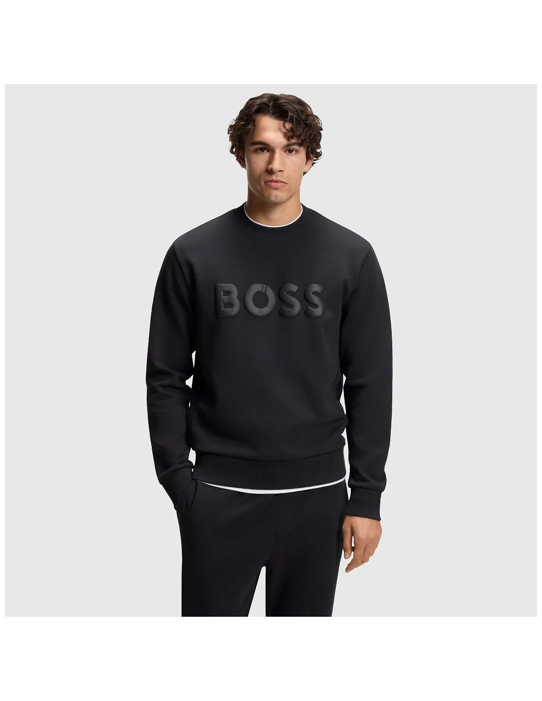 Sudadera de BOSS con diseño moderno y minimalista. Presenta un ajuste regular con cuello redondo, puños y cintura acanalados. Destaca el logotipo de la marca en relieve en la parte frontal del pecho, aportando un toque distintivo al diseño. Ideal para un estilo casual con un enfoque elegante y urbano.