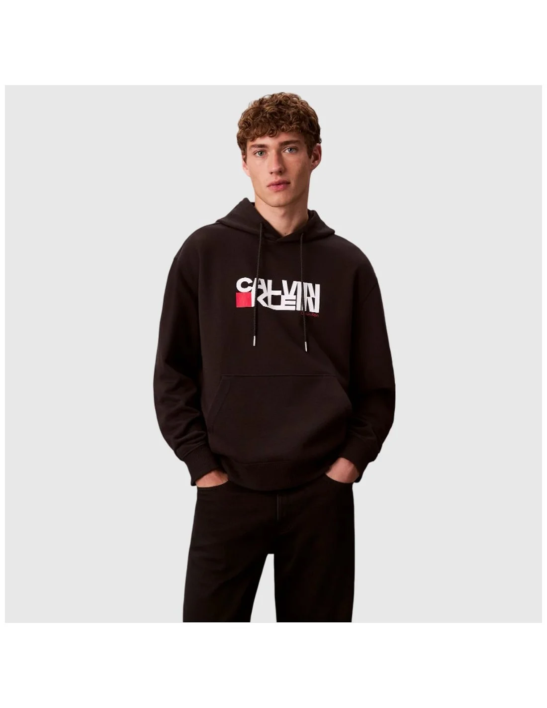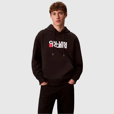 La sudadera con capucha de Calvin Klein destaca por su diseño gráfico frontal con el logotipo en contraste, que aporta un toque moderno y urbano. Confeccionada en algodón, ofrece un ajuste cómodo y detalles funcionales como bolsillo tipo canguro y cordones ajustables. Ideal para complementar looks casuales con estilo distintivo.