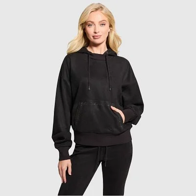 Sudadera Guess de corte relajado con capucha ajustable mediante cordones. Incluye bolsillo tipo canguro en la parte frontal con costuras decorativas y el nombre de la marca bordado de manera discreta. Su diseño combina comodidad y estilo casual, ideal para looks urbanos y desenfadados.