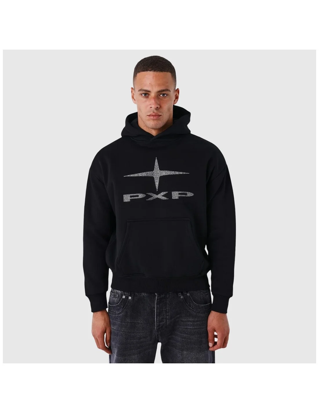 La sudadera con capucha Project X Paris para hombre es una prenda casual de estilo urbano. Confeccionada en tejido de mezcla suave, ofrece un ajuste regular cómodo. Su diseño en color negro con logotipo frontal PXP en strass aporta un toque moderno y distintivo. Ideal para looks relajados y streetwear contemporáneo.