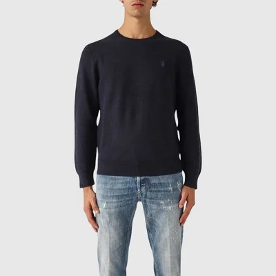 Jersey de punto fino Ralph Lauren con cuello redondo y ajuste regular. Presenta el icónico logotipo bordado en el pecho, puños y dobladillo acanalados para mayor confort. Ideal para looks casuales o combinaciones más pulidas con camisa.