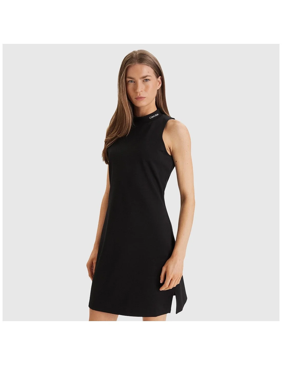 Vestido Calvin Klein de diseño minimalista confeccionado en tejido suave y ligero que aporta comodidad durante todo el día. Presenta corte recto con silueta ligeramente evasé, cuello alto y diseño sin mangas. Incorpora detalle del logotipo en el cuello y pequeñas aberturas laterales en el bajo que aportan movimiento. Una prenda versátil ideal para looks urbanos y contemporáneos.