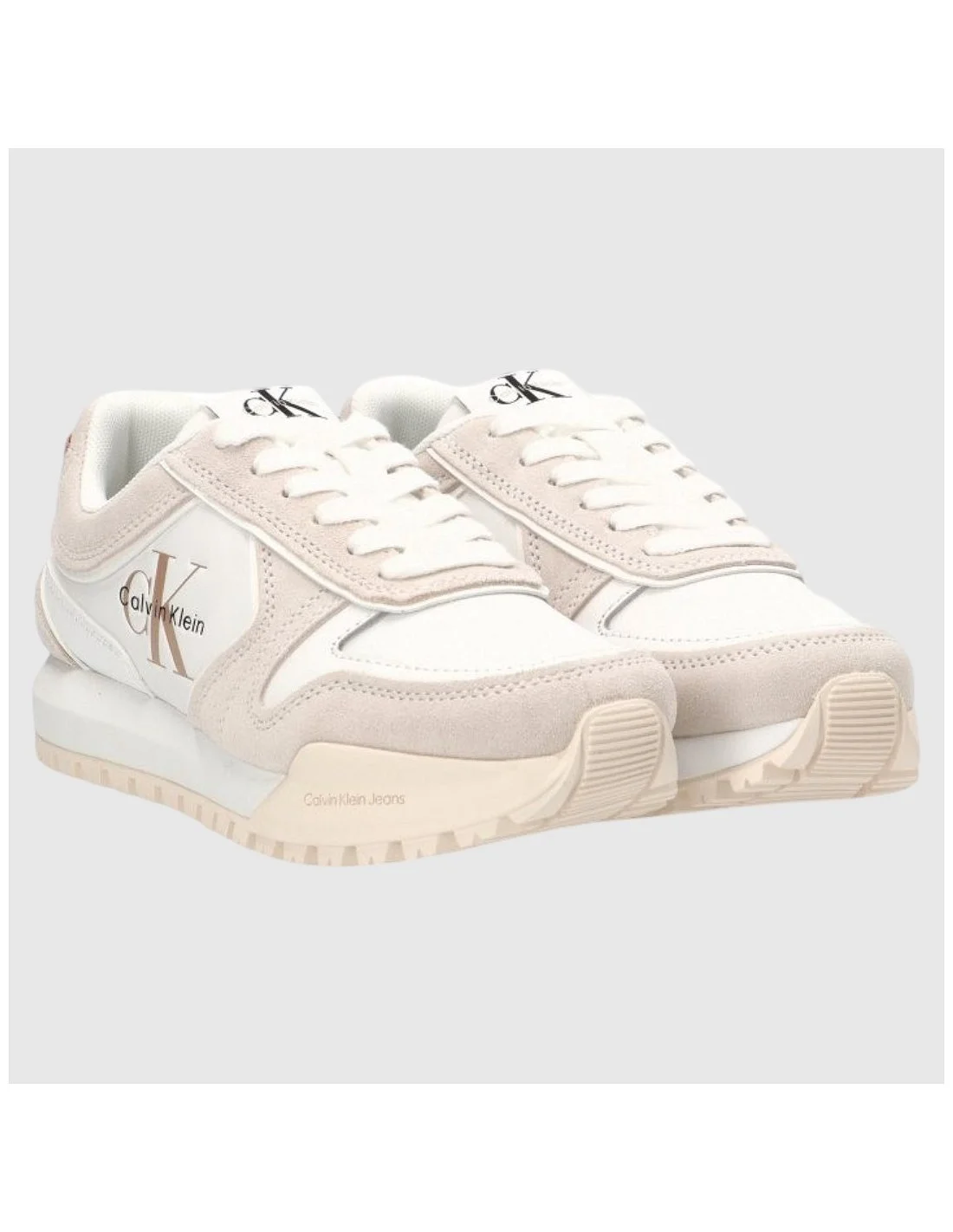 Las zapatillas Calvin Klein combinan una estética retro con funcionalidad moderna. Fabricadas con materiales sintéticos y detalles en gamuza, presentan una suela robusta con relieve para mayor tracción. El logotipo lateral y la etiqueta trasera aportan un acabado distintivo. Perfectas para un estilo casual y versátil.