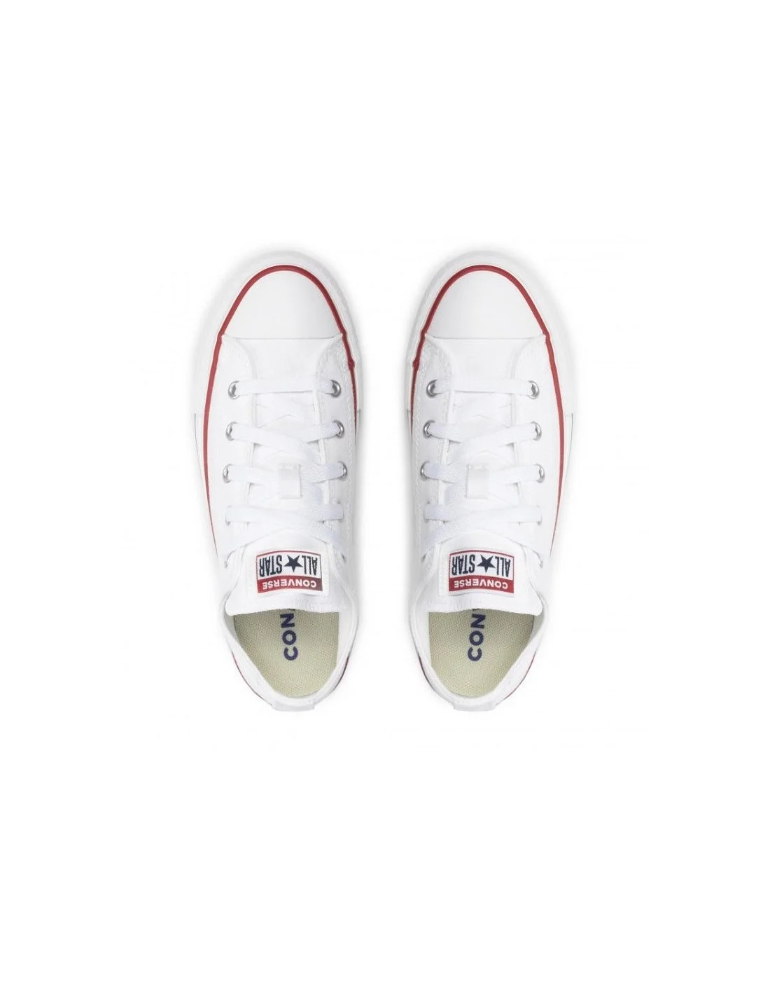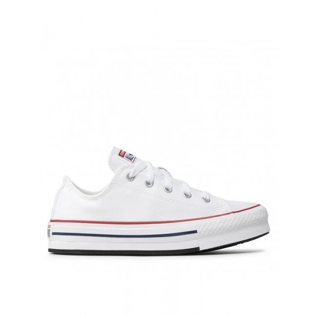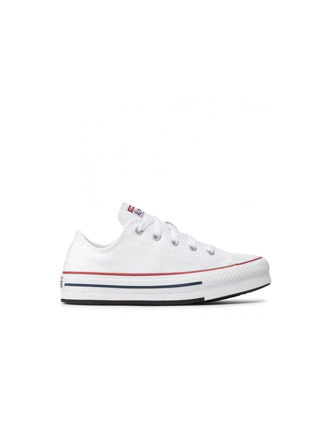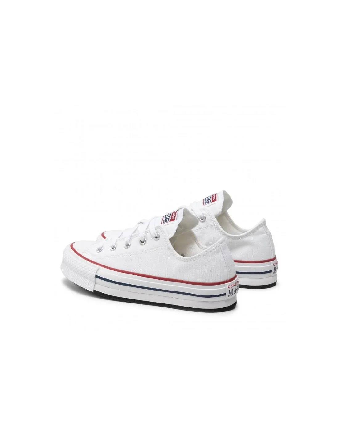 Las zapatillas Converse Chuck Taylor All Star Low son un clásico atemporal del calzado casual. Fabricadas en lona blanca, presentan suela de goma con líneas en rojo y azul, aportando un toque retro distintivo. Su diseño de perfil bajo y ajuste con cordones las hace versátiles y cómodas para el día a día. Ideales para looks informales con estilo icónico.