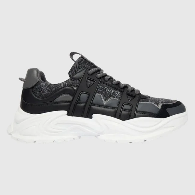 Estas zapatillas de Guess presentan un diseño moderno con suela chunky y detalles estructurales que aportan carácter y soporte. Combinan diferentes texturas en el corte, incluyendo paneles con logotipo, y cuentan con cierre de cordones. Ideales para un look urbano con un toque atrevido y actual.