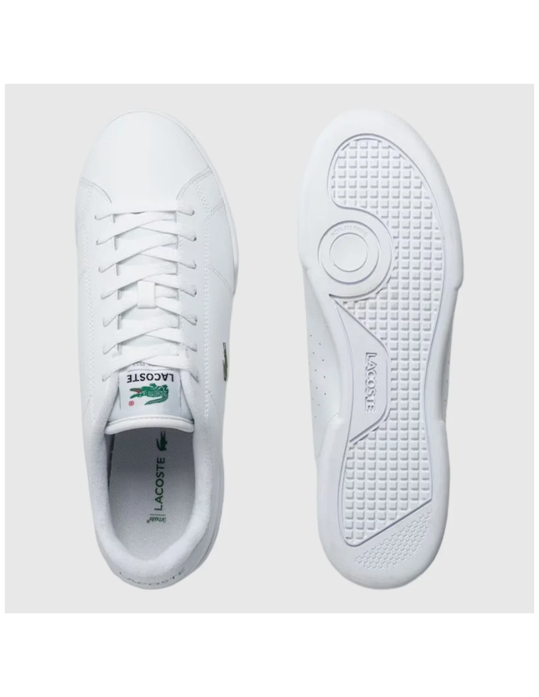 Zapatillas Lacoste de estilo clásico con diseño de caña baja y cierre de cordones. Confeccionadas en material sintético con acabado liso, incorporan el icónico logotipo del cocodrilo bordado en el lateral y detalles de marca en la lengüeta y el talón. Suela de goma para mayor confort y durabilidad. Ideales para un look urbano y versátil.