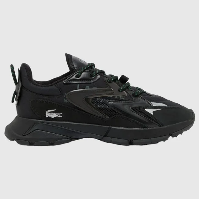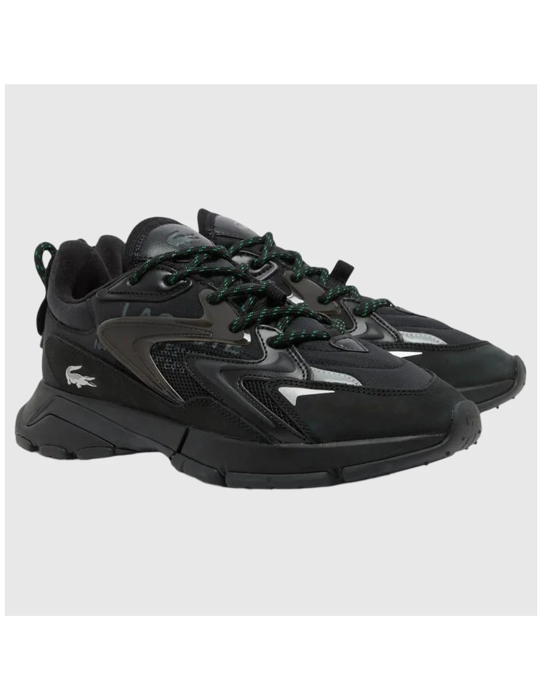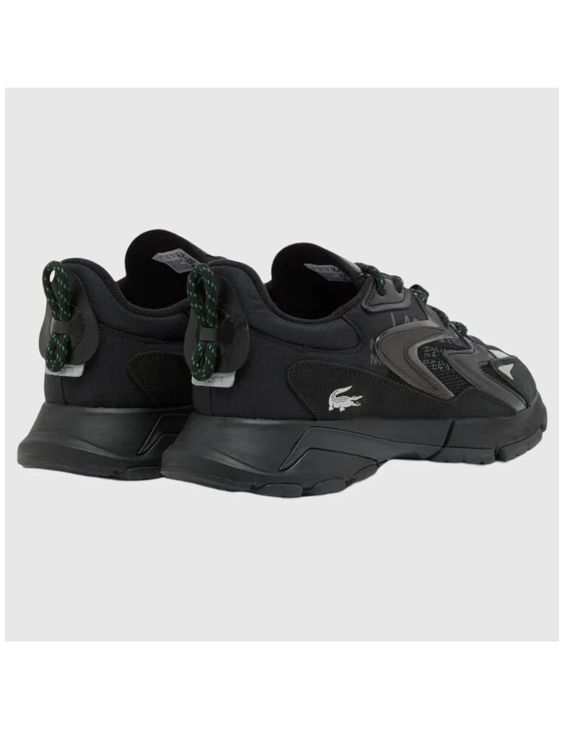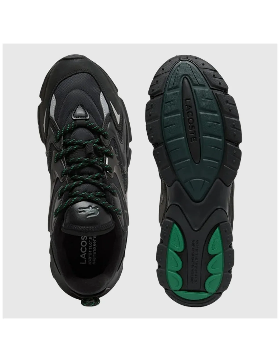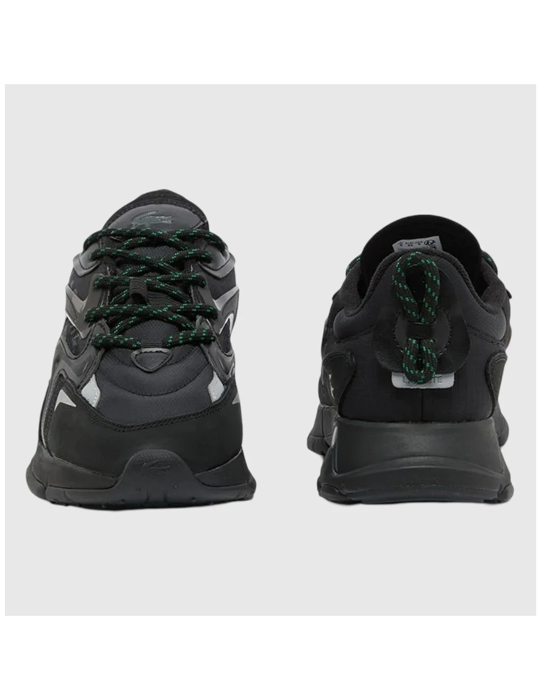 Las zapatillas Lacoste combinan estilo urbano y funcionalidad. Confeccionadas en malla y materiales sintéticos, presentan un diseño robusto en negro con detalles en gris y toques verdes en los cordones. Su suela gruesa y los paneles reflectantes aportan confort y visibilidad, ideales para un look deportivo contemporáneo. Perfectas para el uso diario con un estilo distintivo.
